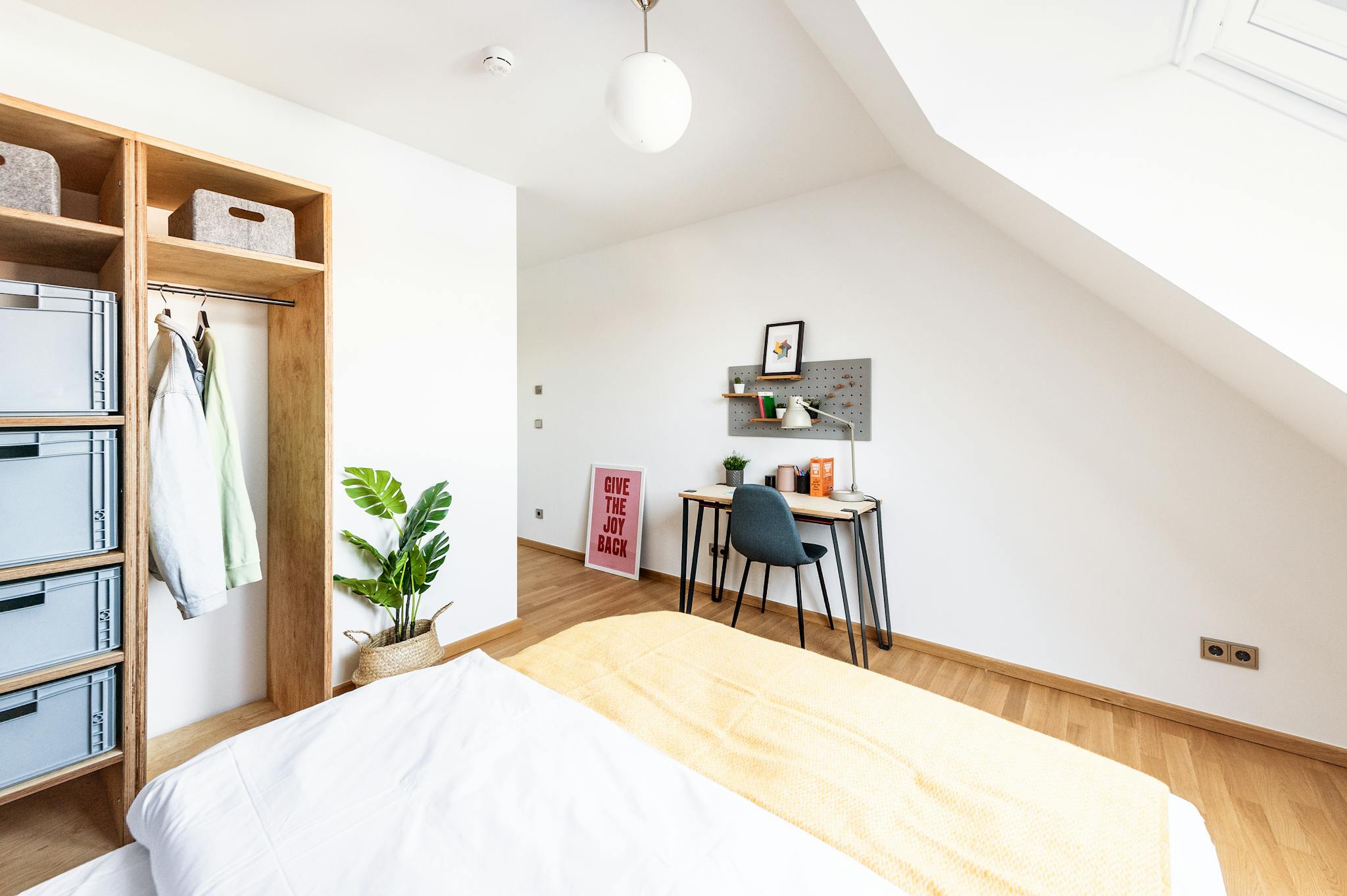 Located at the heart of Friedrichshain, this is your ideal home to explore all the hidden gems the city has to offer. The building has a big community room with a football table, co-working area and lots of space to hang out in. The backyard entails bike stands and lots of green to enjoy.