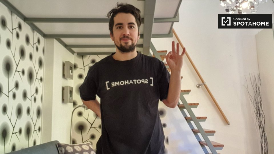 No doubt about it. It’s a super modern space with a black and white decor. Wallpaper in the living area looks like dandelion puffs – make a wish and watch it come true.