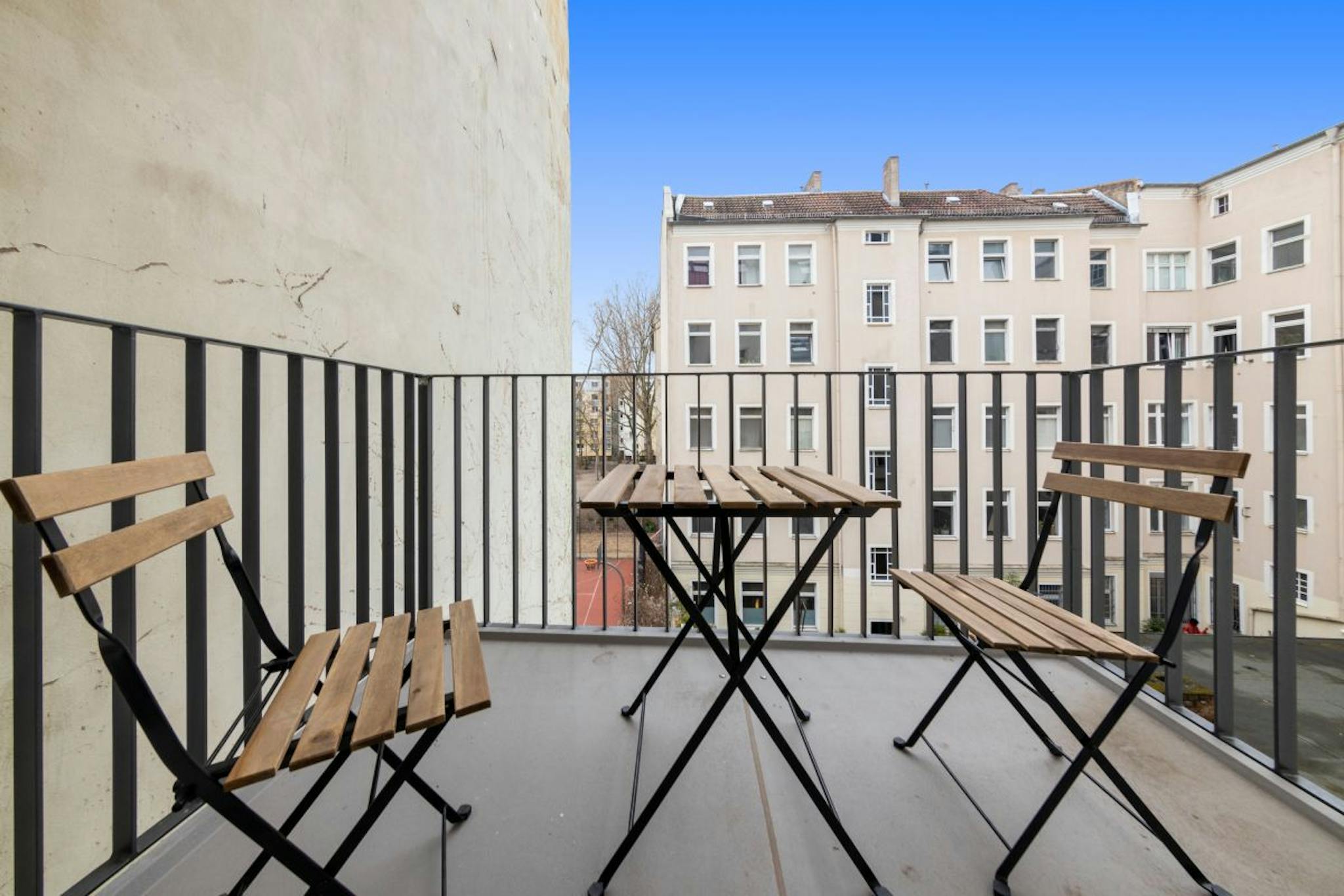 Non-SmokingNot allowedThis beautiful fully furnished 2 bedroom apartment has everything you need to enjoy the vibrant lifestyle that Berlin has to offer. You will find an equipped kitchenette right next to the living room, so you can enjoy food and drinks in the company of friends and family. The apartment also has a dining table and a rain shower in the bathroom. There is a launderette in the building (approx. €3/wash or dryer).