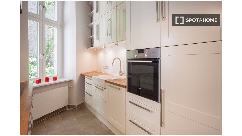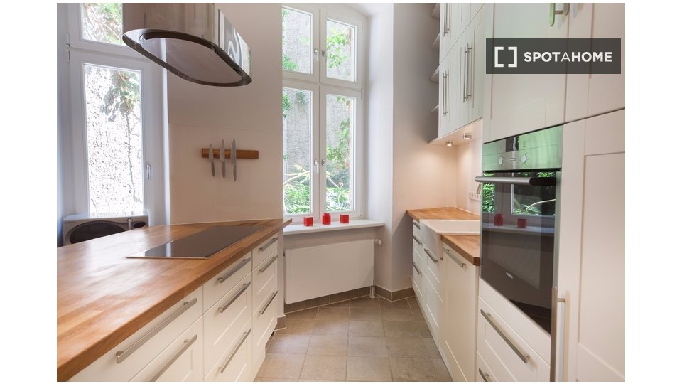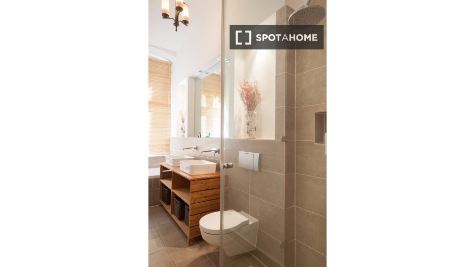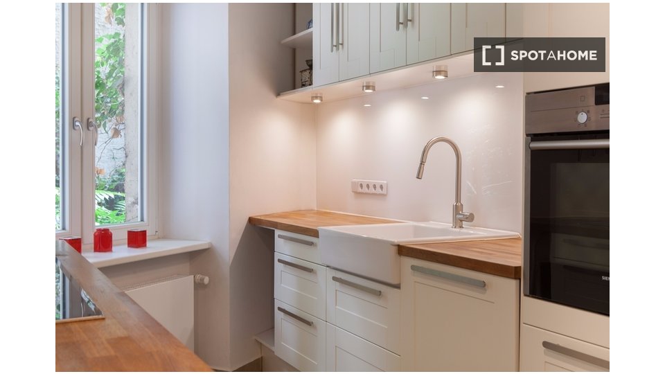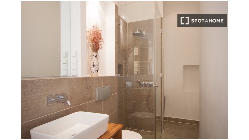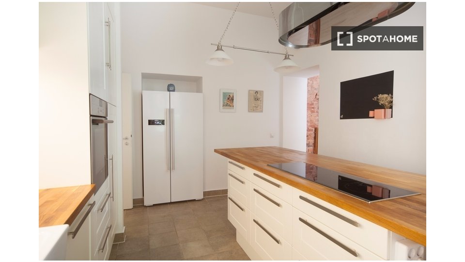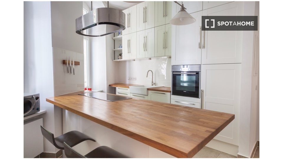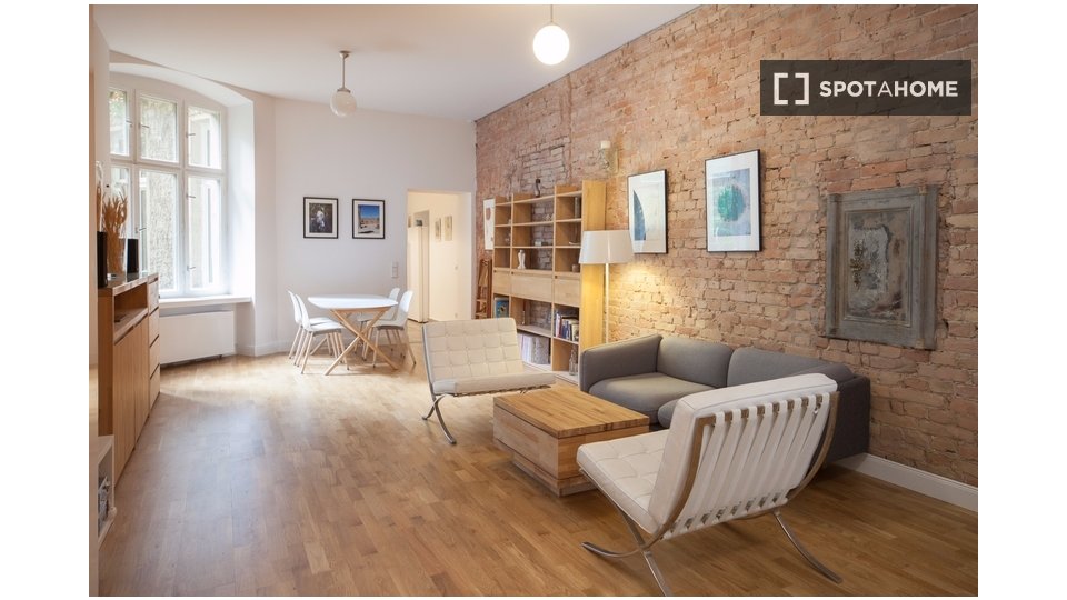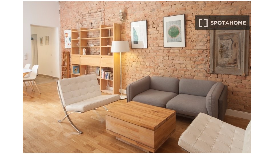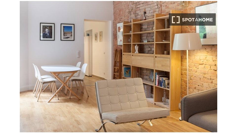 On 100 m² the apartment offers 2 bedrooms, one with a double bed and one with a sofa bed. A high quality fitted kitchen with all accessories, a modern bathroom with bathtub and a living area with an exposed brick wall, which gives the apartment a warm atmosphere.