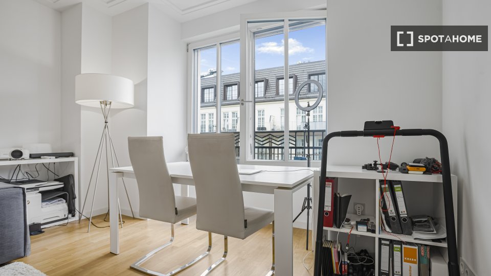 Pets not allowedNot allowedExperience the comfort of this fully furnished 1-bedroom apartment equipped with all essentials for your stay. It includes a well-equipped kitchen with dishwasher and oven. Heating system employs advanced underfloor solutions. Air conditioning is facilitated by individual units. Guests will also enjoy the convenience of common washing machines and parking space. The property has been verified by Spotahome for your peace of mind.