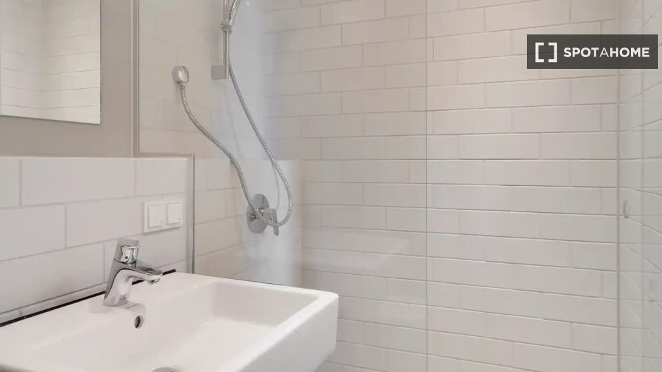 Shower, Mirror, Sofa Bed, Wardrobe, Fitted kitchen, Refrigerator, Microwave, Dishwasher, Dining Table, TV, Working desk, Lamp, Chairs, Carpet