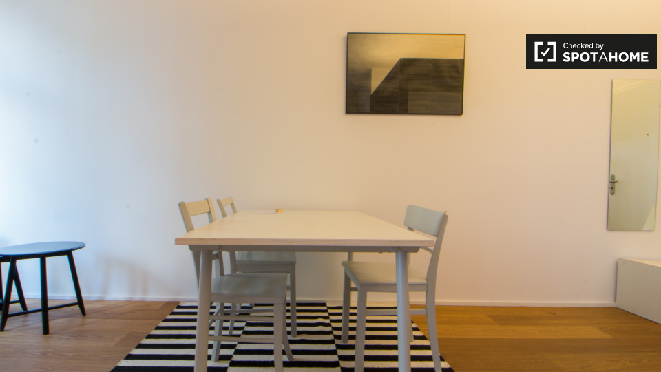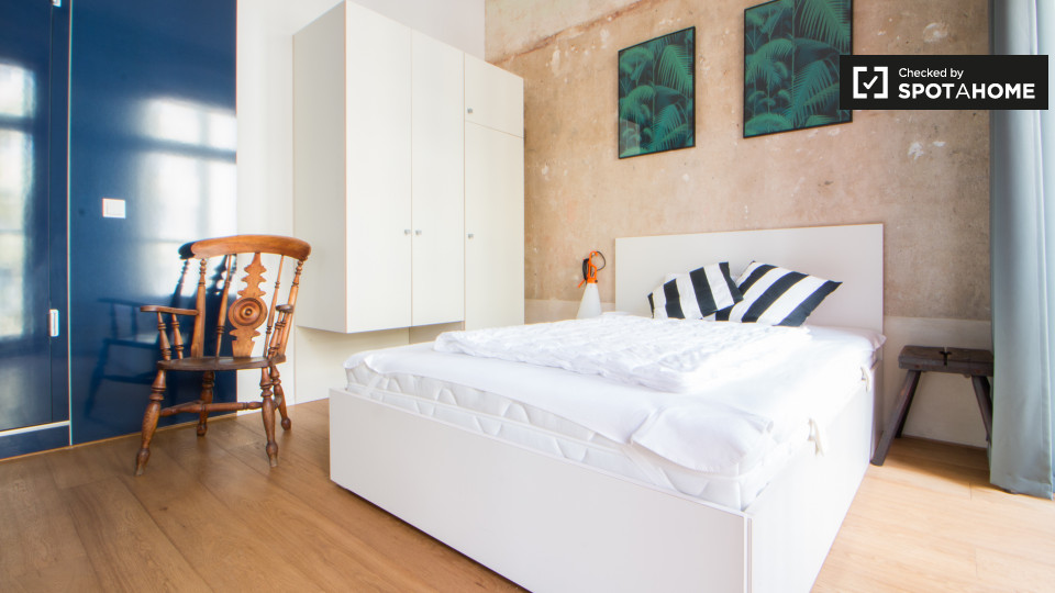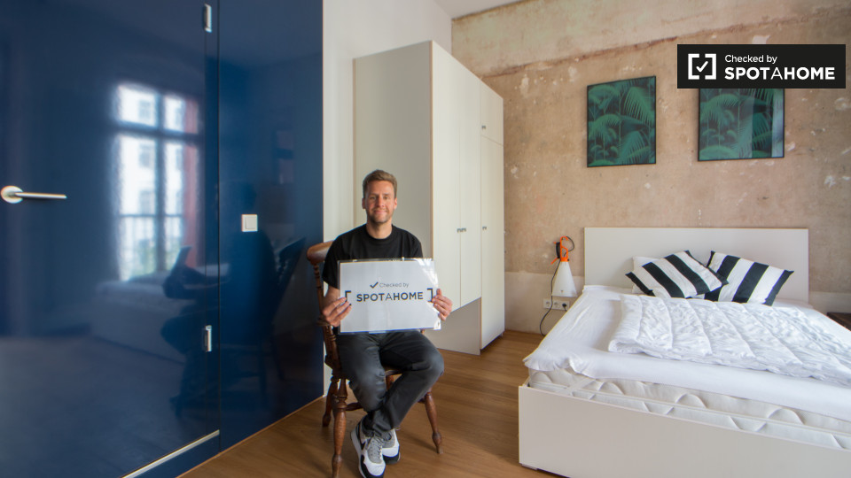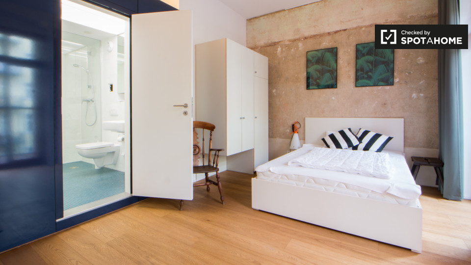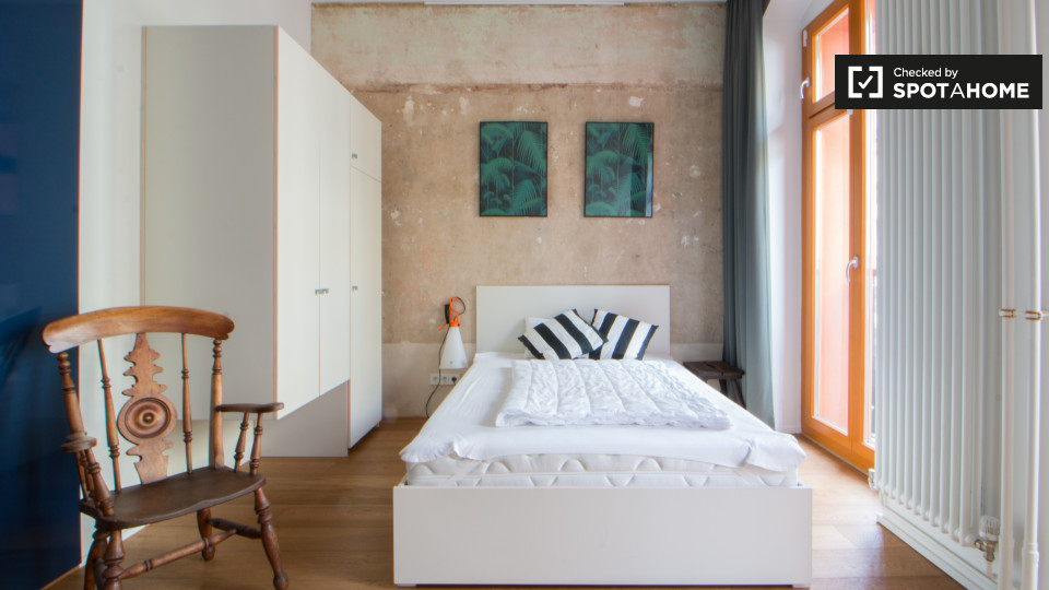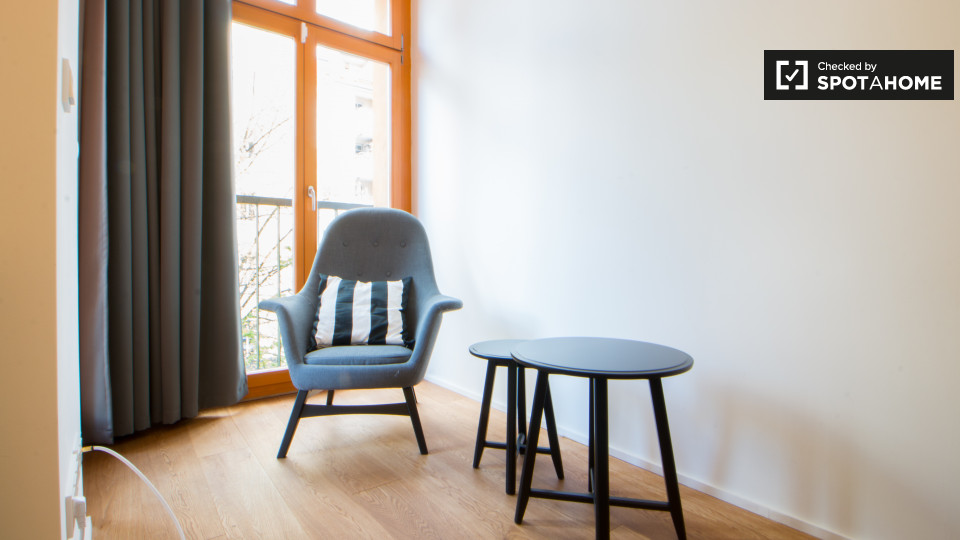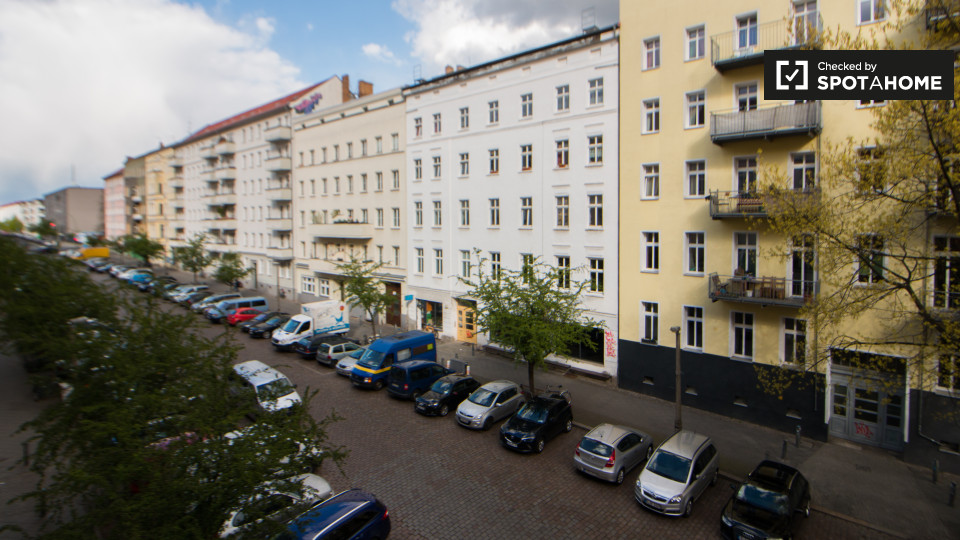 Friedrichshain is a trendy neighborhood that is both residential and lively. There are plenty of bars, cafes and restaurants nearby – perfect for a night out. You won't have to go very far, however, with a bar, communal patio, and other common areas in the building.