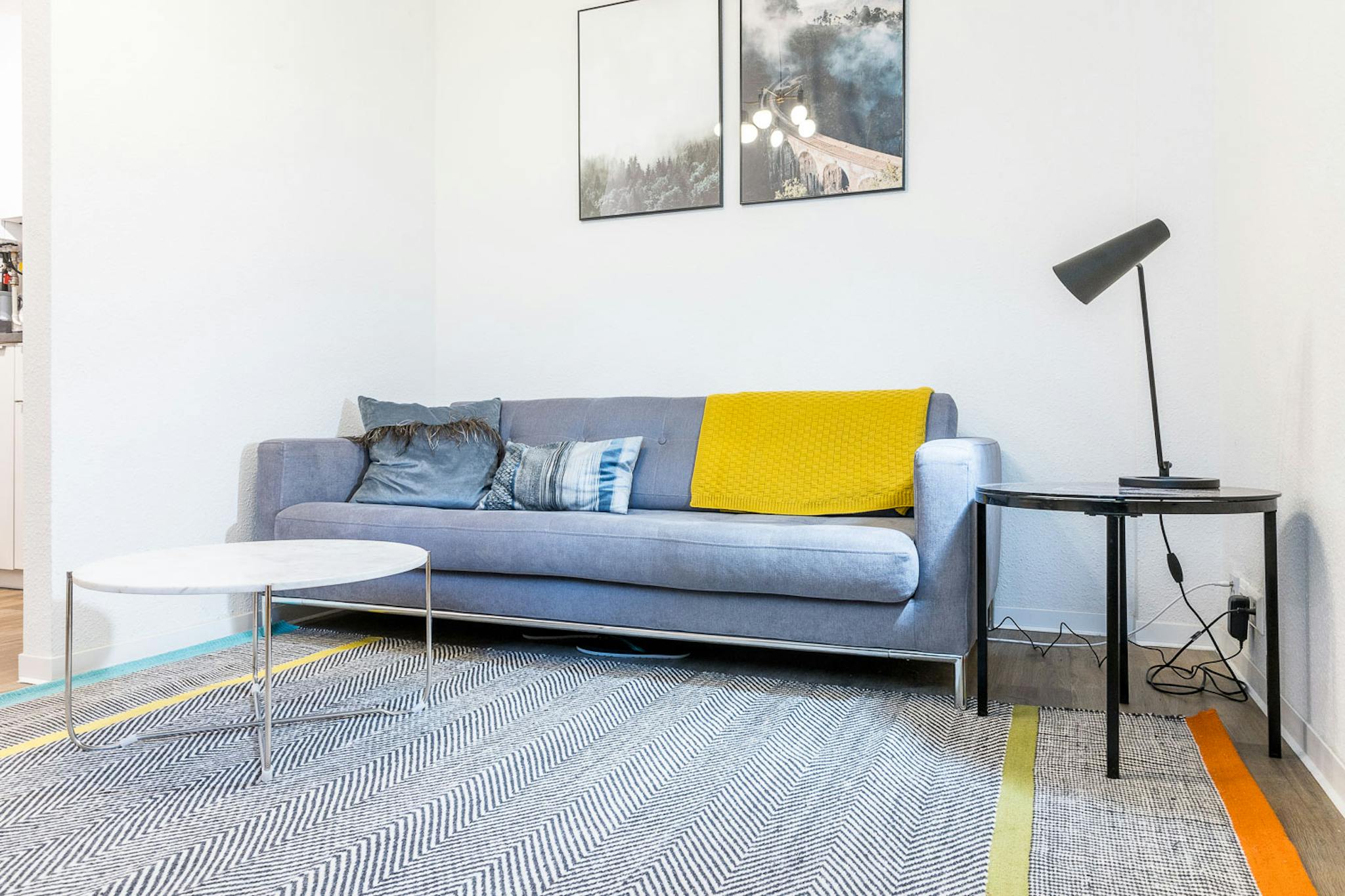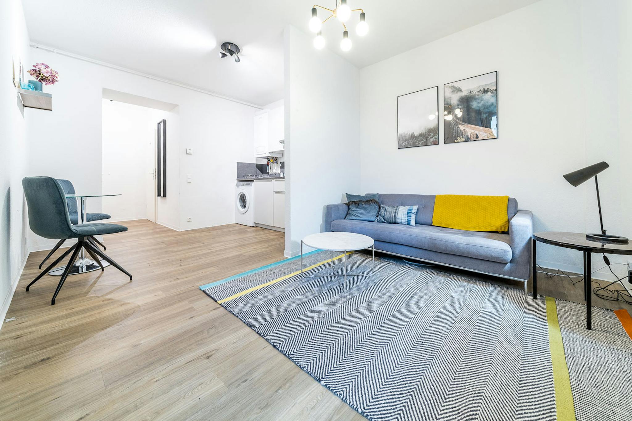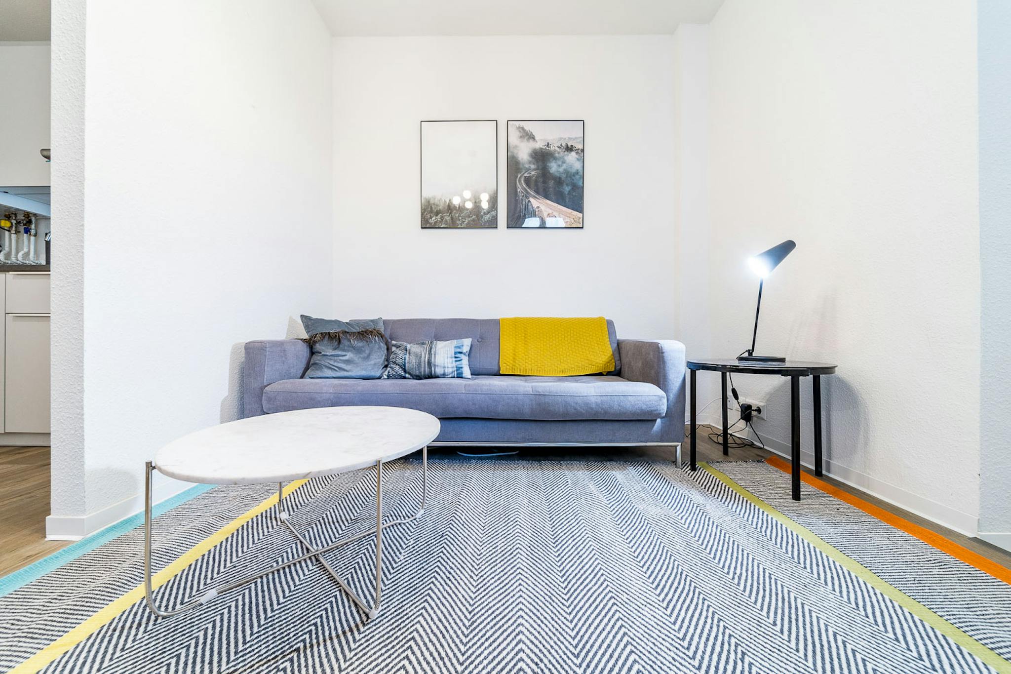 The apartment has an open kitchen and living room. You’ll find everything you need to cook in the kitchen. There’s a two-seat sofa in this room and a large smart TV. In the bedroom you’ll find a cozy queen-size bed, a desk and a small wardrobe. There’s a shower in the bathroom. Private terrace with small garden. Quiet, located into the backyard.
