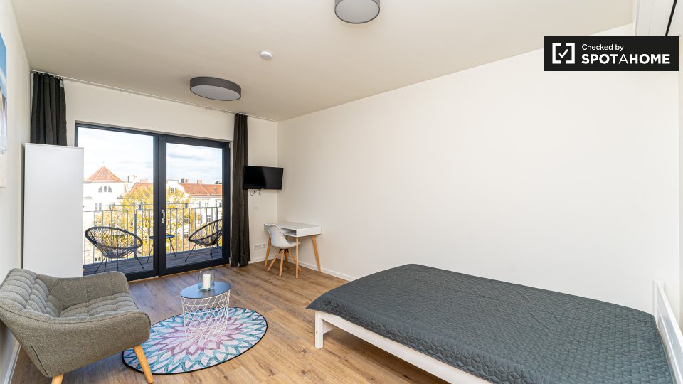 Pets not allowedNot allowedFurnished studio on Bornholmer Str. between the boroughs of Pankow and Prenzlauer Berg in Berlin.
