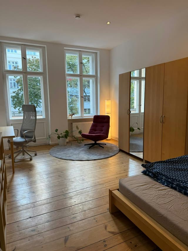 Non-SmokingNot allowedGeräumiges, helles Zimmer mit kleinem Balkon. Zimmer ausgestattet mit Doppelbett, 2 großen Kleiderschränken, Relax-Sessel, Bürostuhl, Schreibtisch, Regal & 65-Zoll-Smart-TV