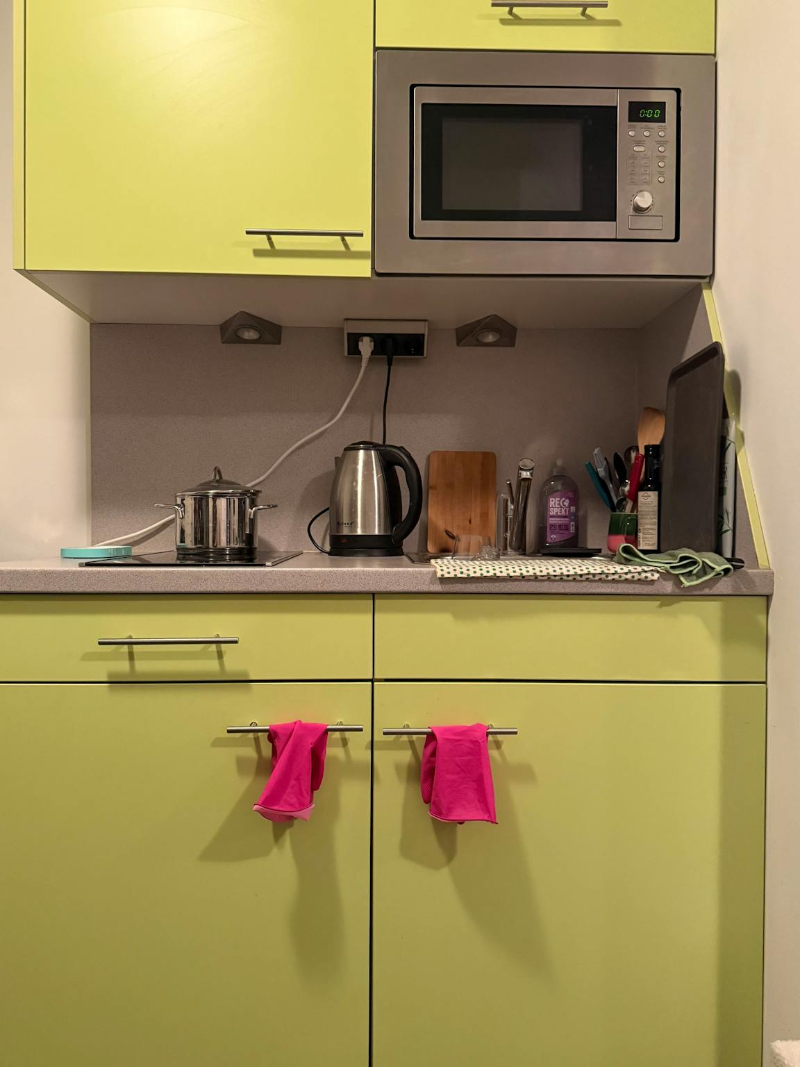 Bright and contemporary studio apartment in the heart of Berlin-Mitte with a balcony. The apartment is fully furnished and in excellent condition. It features a comfortable king-size bed and a sofa. A Fully equipped kitchen with all essential appliances make the studio ideal for individuals, couples, or occasional guests. Everything you need for a comfortable stay in Berlin is provided.