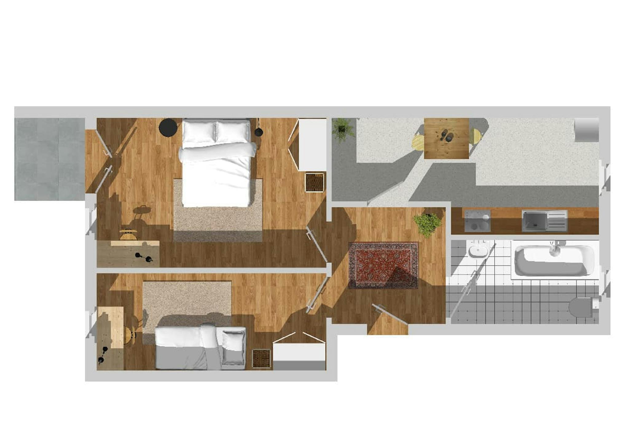 The apartment is designed in a modern style with spacious rooms and a great kitchen. All costs are included in the rent, including bills, internet, weekly cleaning and more!