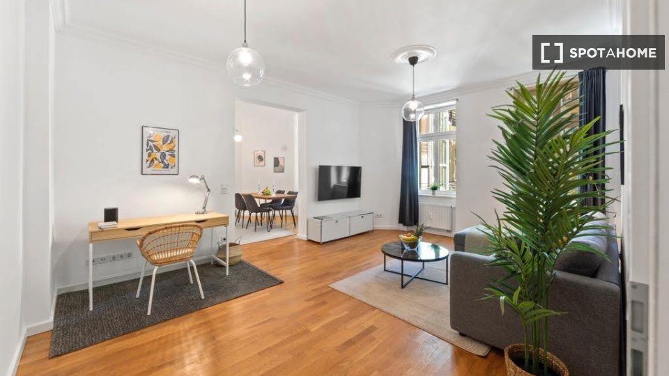 Pets not allowedNot allowedDiscover your new home in this fully furnished 2-bedroom apartment in Berlin. Designed for convenience and comfort, the property features a well-equipped kitchen and includes utilities such as water, electricity, gas, and WiFi—a hassle-free solution for any tenant. While not personally verified by Spotahome, rest assured, all Spotahome landlords are thoroughly vetted, ensuring reliable accommodations. Perfect for all genders, without restrictions, this apartment offers a practical and welcoming living experience.