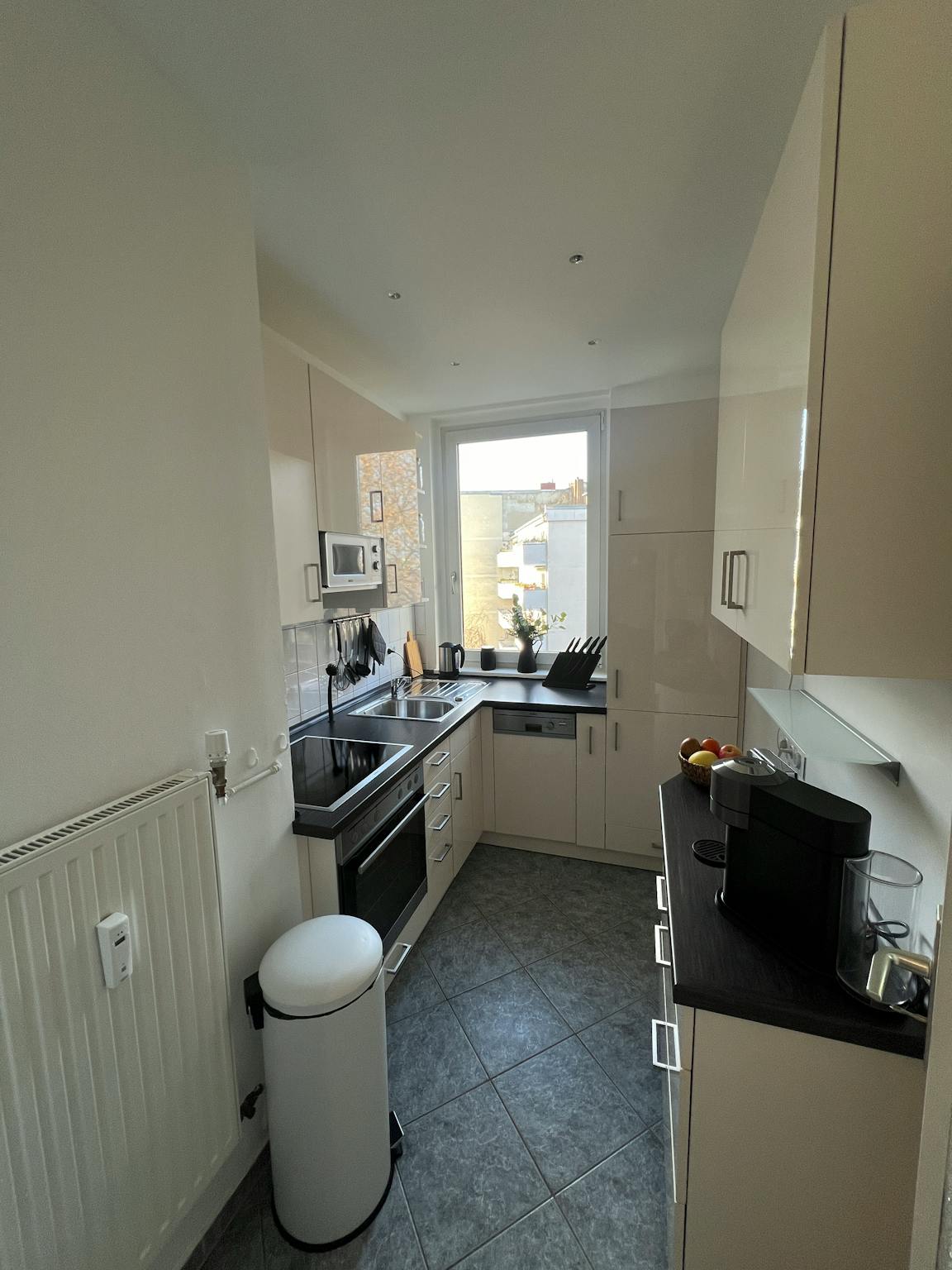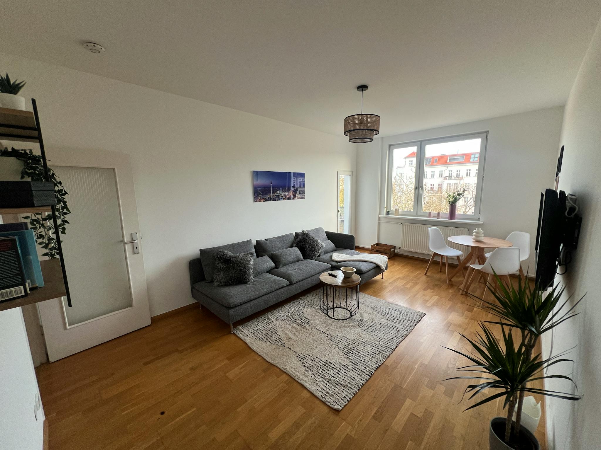 Non-SmokingNot allowedMy bright and cozy balcony 2-room apartment is located close to the popular Landwehr canal (a small river and one bridge further is the famous and popular Admirals bridge) and offers both business travelers and students an ideal retreat in the middle of Kreuzberg. The fully equipped kitchen includes everything you need for a self-made meal. Have restful nights in the cozy boxspring double bed (180x200cm). You will find enough space for your clothes and luggage in the drawer in the bedroom and in the boxspring bed itself. The bathroom contains a shower and the washing and dryer machine. During your stay, you will be provided with high-quality linen and towels. My cozy apartment is surrounded by a variety of cafés, bars and optimal transport links.