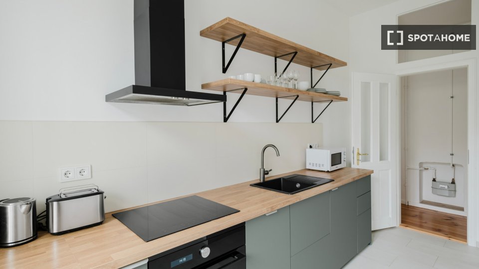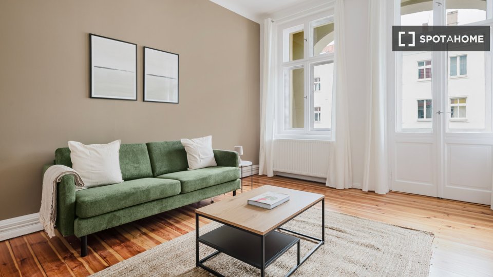 Pets not allowedNot allowedThis inviting studio in Berlin is fully furnished and equipped with modern facilities such as central heating, a dishwasher, an oven, a private washing machine, and a television. Spotahome has personally verified this property for your convenience. The monthly rent includes all bills (electricity, water, gas, and wifi), ensuring a hassle-free stay. Pets are not allowed.