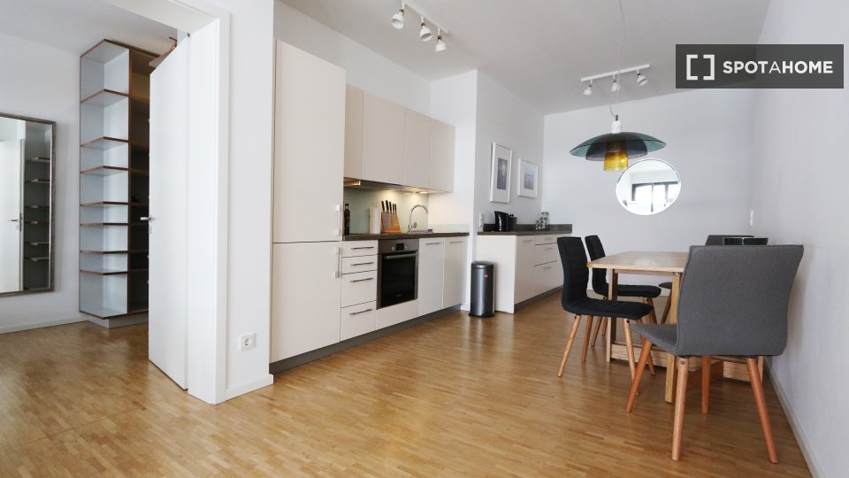 Pets not allowedNot allowedWelcome to this delightful 2-bedroom apartment for rent located in the vibrant city of Berlin. The apartment comes fully furnished, featuring a well-equipped kitchen with a dishwasher and oven, private laundry amenities with a washing machine and dryer, and a balcony for you to relax and enjoy. Air conditioning and heating are not mentioned. All bills, including electricity, water, gas, and WiFi, are included. Smoking and pets are not allowed, but couples and professionals alike are welcome. This property has been personally checked by Spotahome.