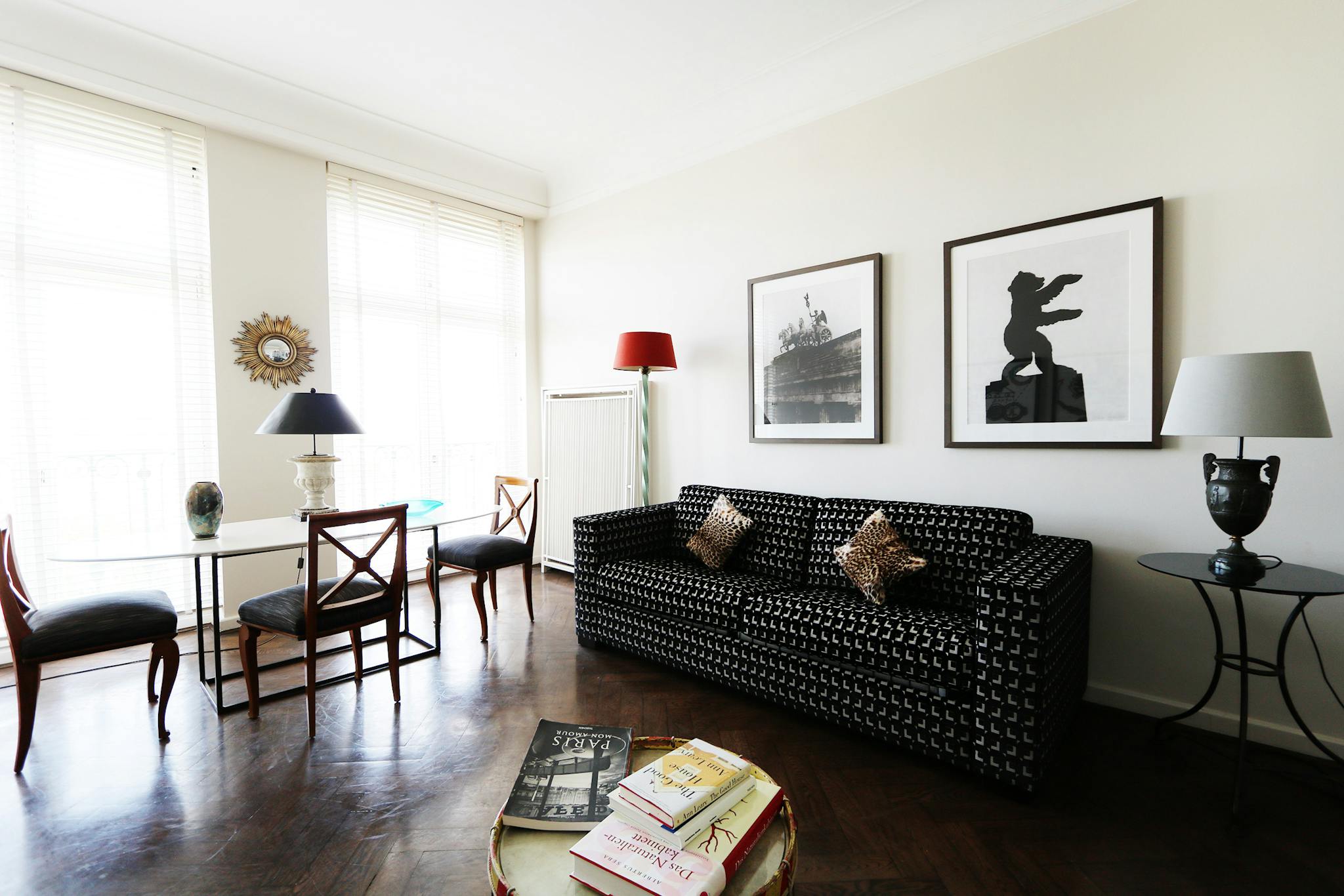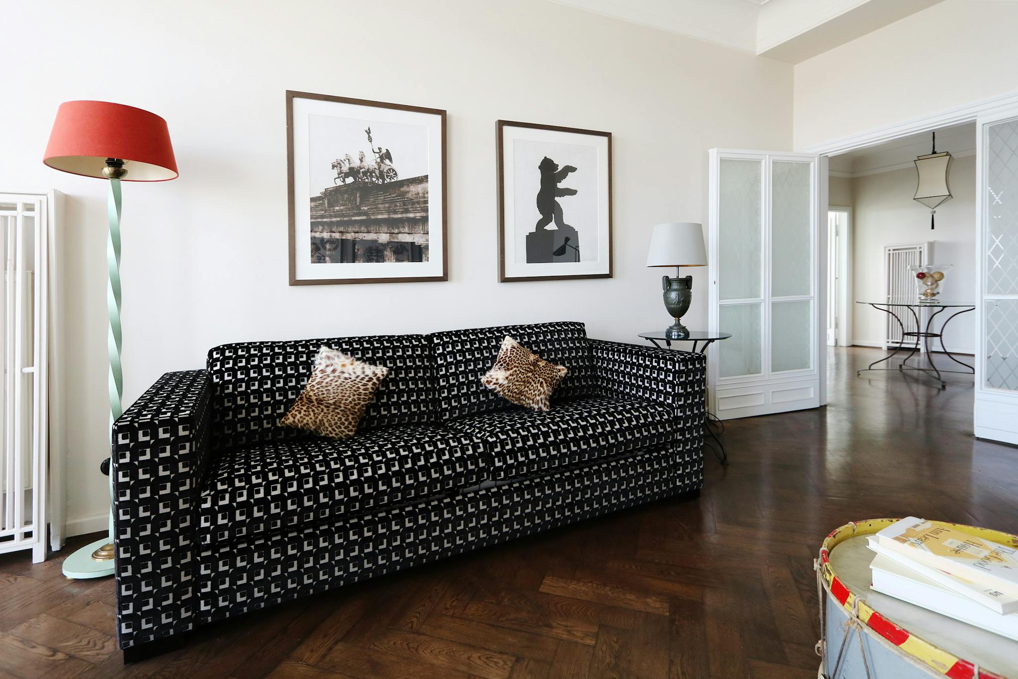 Non-SmokingNot allowedThe apartment lies on 10th floor in one of two The Henselmannn towers and can be comfortably reached with a lift. As you enter the grand foyer you`ll notice a classy yet arty vibe with attention to detail which welcomes you. Apart from the impressive artworks and the interior so is the view from the apartment down on Straussberger Platz. This clean and modern apartment is made authentic through its eclectic and tasteful décor, featuring unique furniture and pieces collected from around the world. The apartment's pristine dark wooden parquets, featured throughout. The spacious bedroom enjoys a comfortable king size bed for a peaceful sleep including spectacular views. The custom made kitchen is a real eye catcher and is fully equipped including modern appliances. The day light bathroom is another highlight despite from the black and white marble finishings is the stylish bath tub. An extra storage room is also near the entrance.