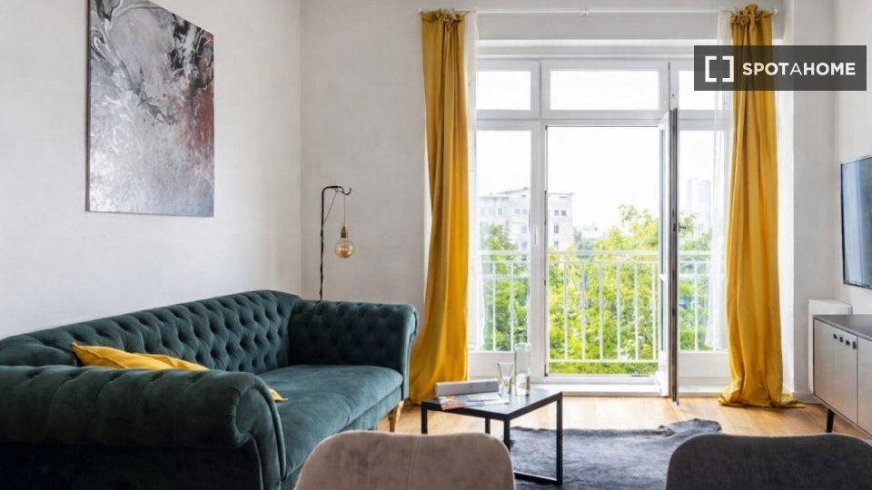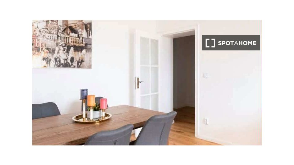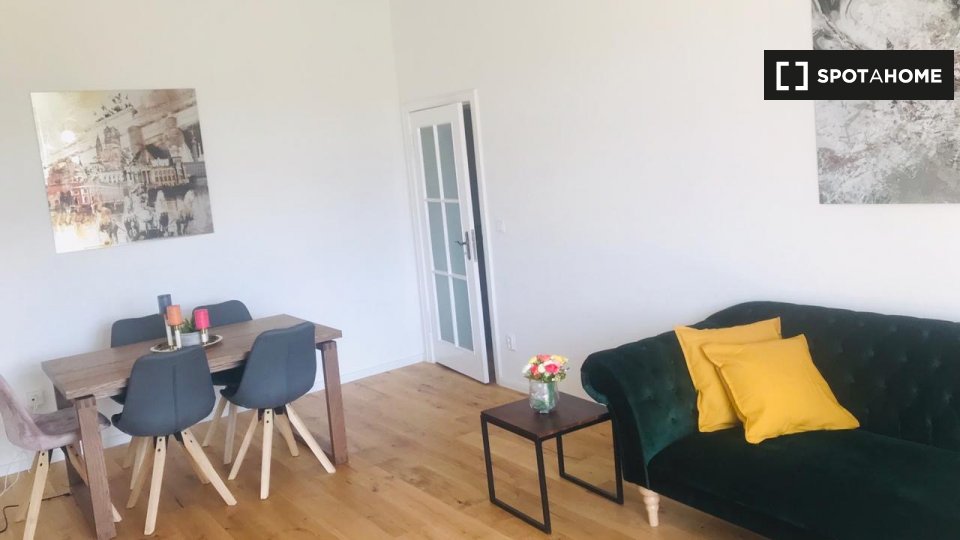 Pets not allowedNot allowedThis furnished 1-bedroom apartment is available for rent in Stralauer Vorstadt, Berlin. The apartment is fully equipped with an equipped kitchen, including a dishwasher and oven, a balcony, and access to a washing machine in common facilities. This property is suitable for professionals and allows couples but does not permit smoking, overnight guests, or pets. All bills, including electricity, water, gas, and wifi, are included in the rent.