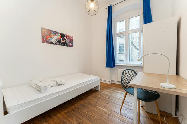 This beautifully modernized, fully furnished shared apartment 94 qm is located on the 1th floor and features high ceilings, wooden flooring, and a bright, welcoming atmosphere. It’s hard to find a more central and exciting location!