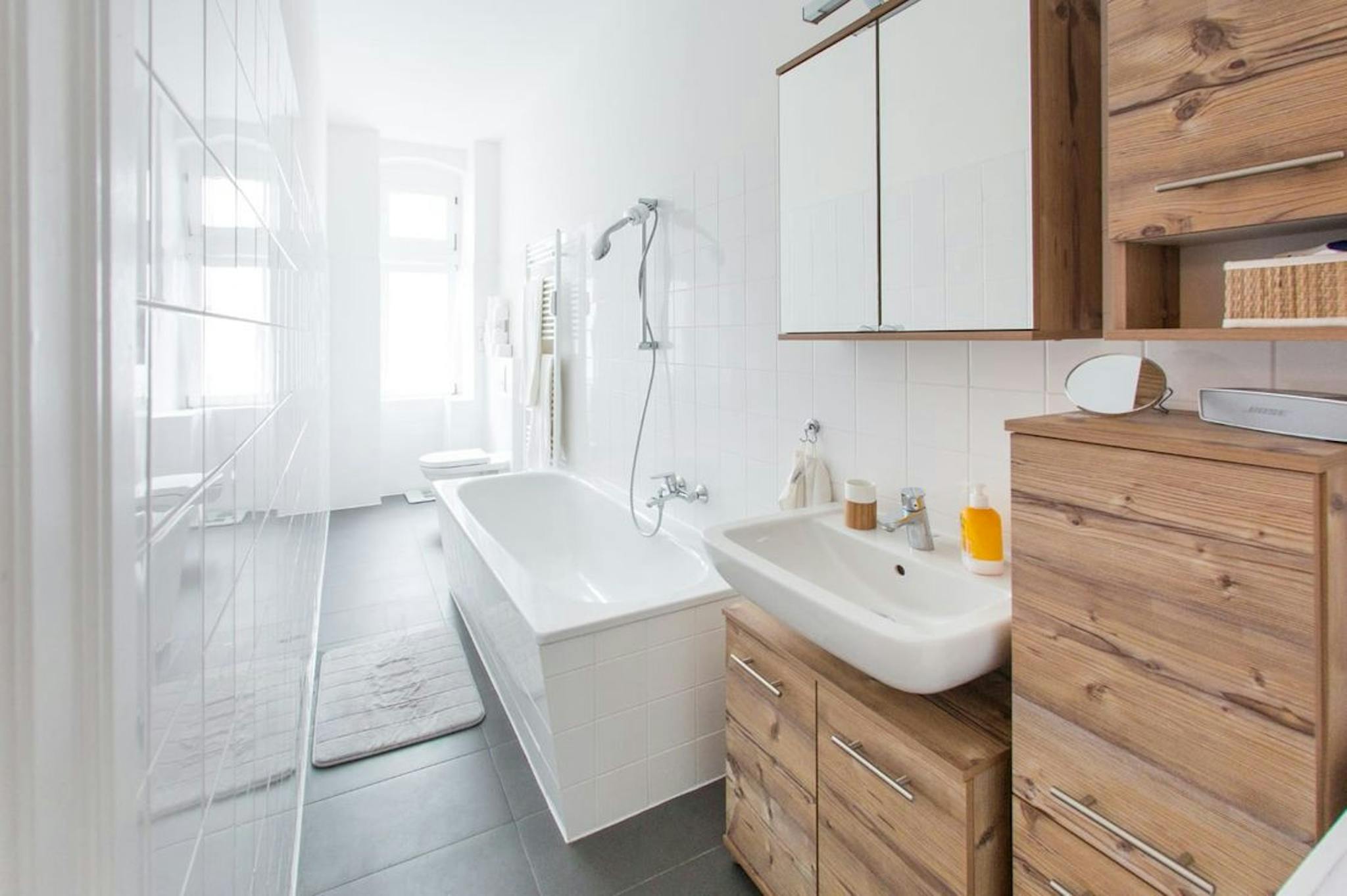 The location around the Bötzowkiez is very popular and offers all shops for daily needs within walking distance. S-Bahn and tram are only 200 meters away. In addition, there is a supermarket three houses away. Cafés and restaurants are within walking distance.