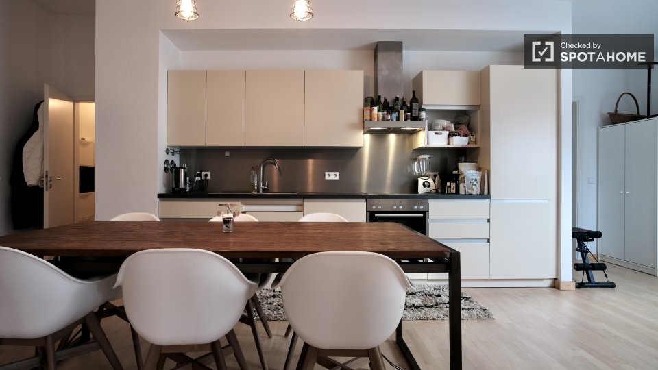 Pets allowedAllowedLooking to rent in Berlin? This fully furnished, 1-bedroom apartment at Am Karlsbad offers an equipped kitchen with a dishwasher and oven, a private washing machine and dryer, and a balcony where smoking is allowed. Pets are welcome with potential restrictions. All utility bills (electricity, water, gas, and WiFi) are included, and the place has been personally verified by Spotahome's homechecker. Elevator access ensures convenience for tenants. Note that air conditioning is unavailable.