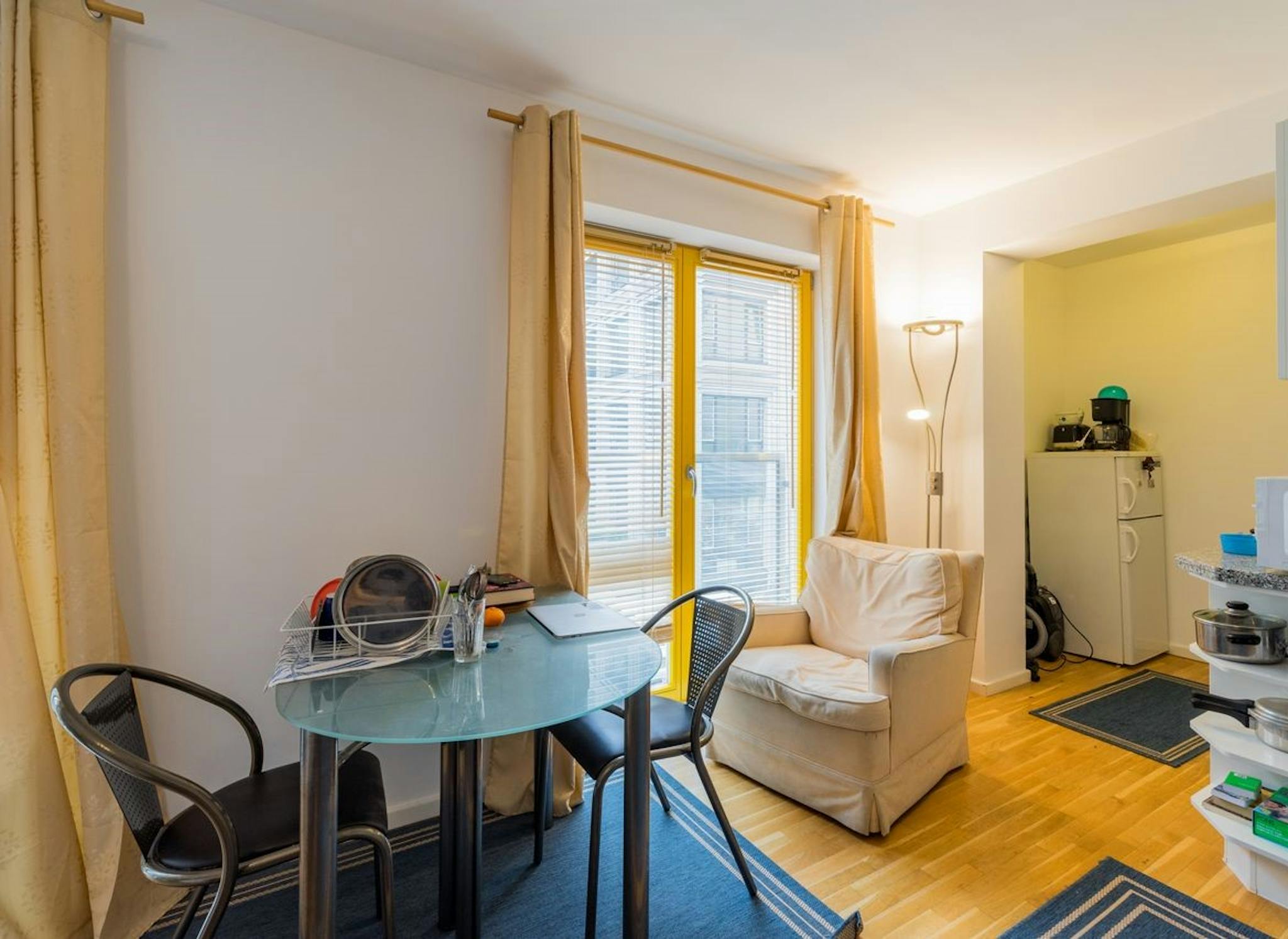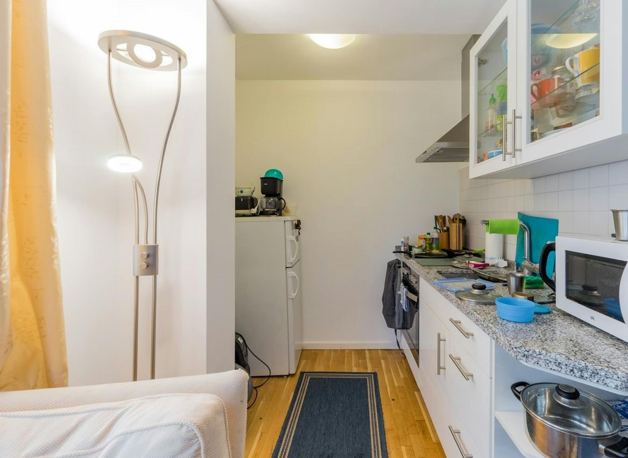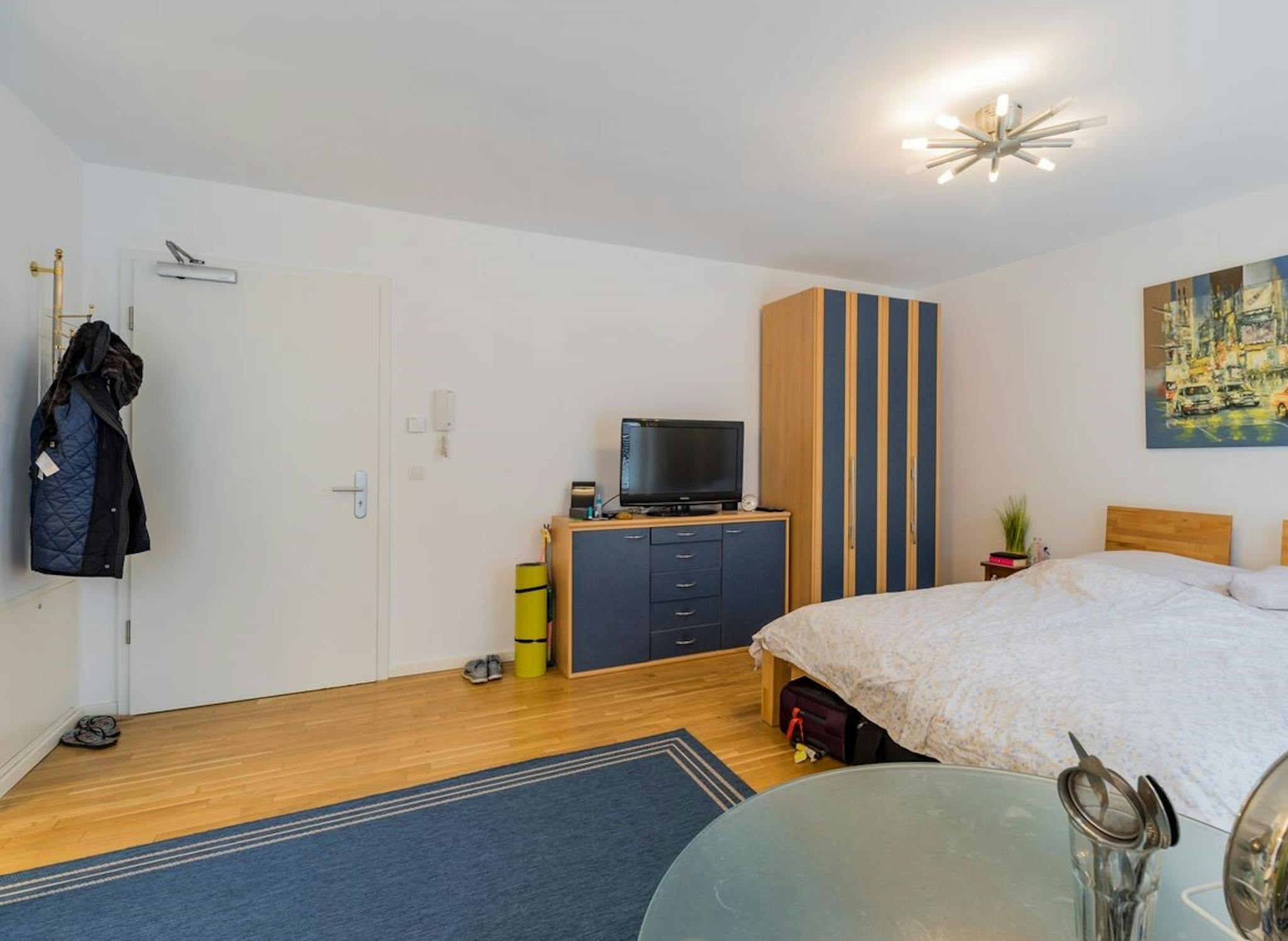 The apartment is equipped atva high standard with underfloor heating and real wood parquet flooring, tiled shower room and a Marquardt kitchen with granite top. The apartment is fully equipped with furniture and all kitchen utensils. Non-smoking apartment