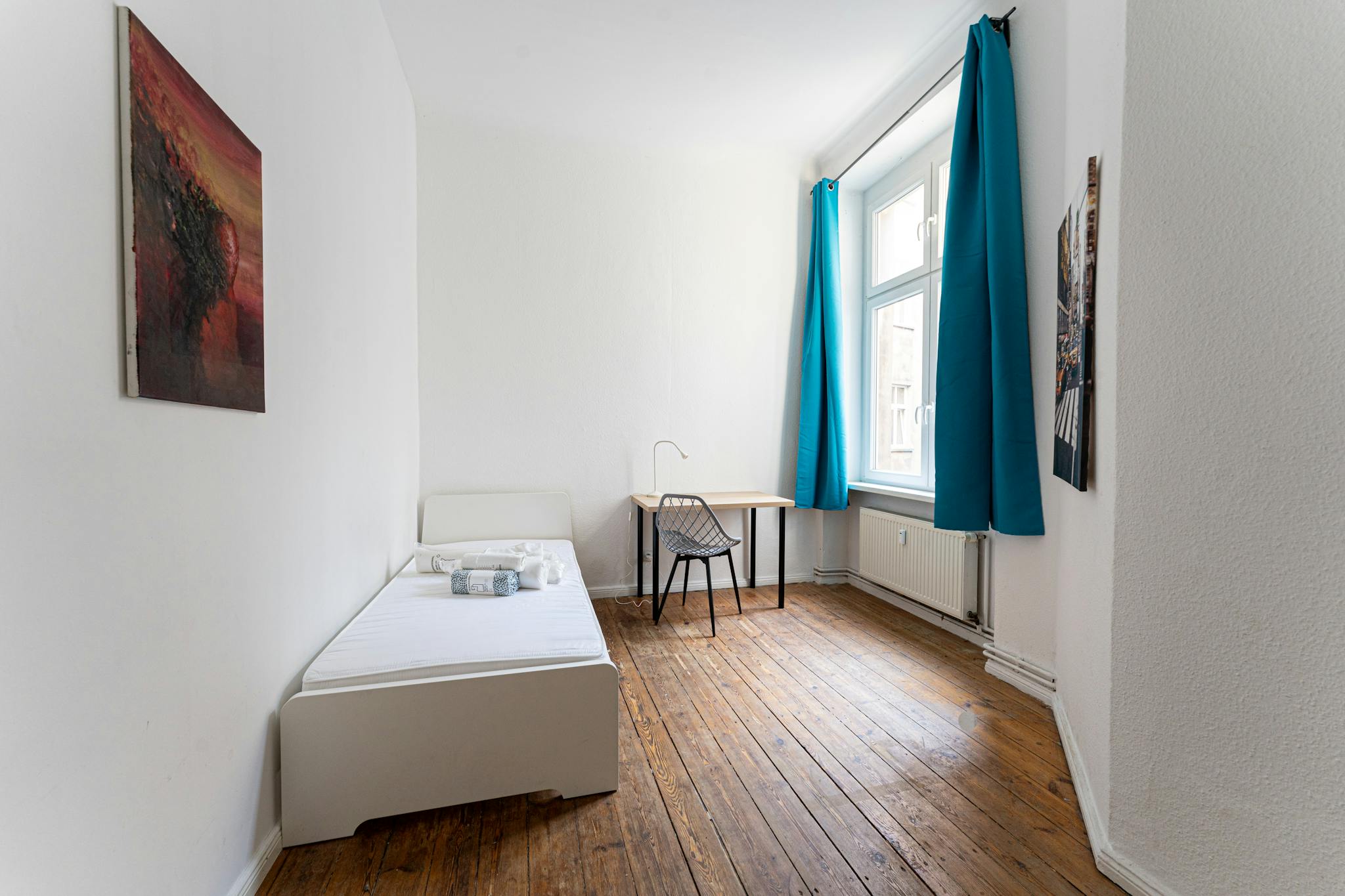 This beautifully modernized, fully furnished shared apartment 94 qm is located on the 1th floor and features high ceilings, wooden flooring, and a bright, welcoming atmosphere. It’s hard to find a more central and exciting location!