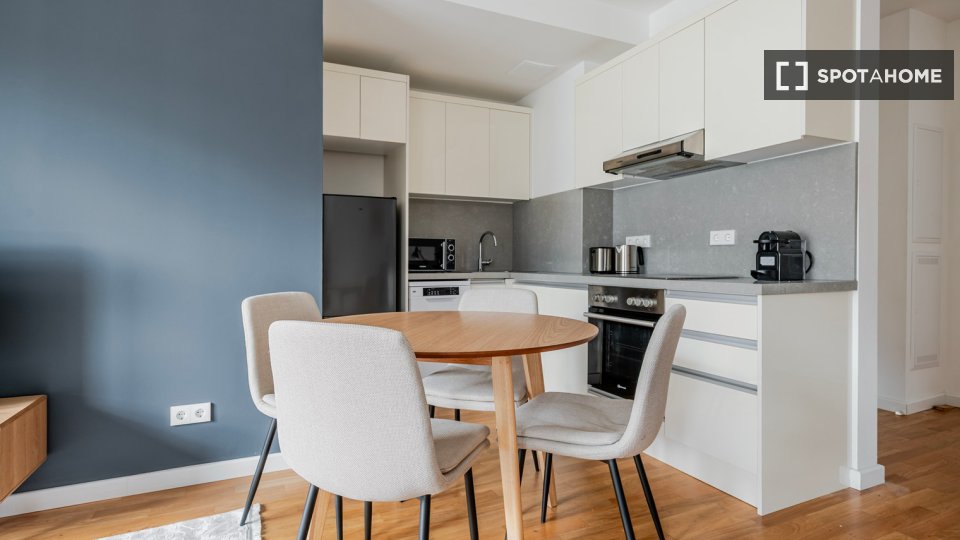 Pets not allowedNot allowedThis fully-furnished 1-bedroom apartment in Berlin offers a comfortable living experience with features such as an equipped kitchen, a private washing machine, and a dishwasher. It includes all bills—electricity, water, gas, and WiFi—and provides bed linen for your convenience. Please note that pets are not allowed, and tenants are responsible for periodic cleaning.