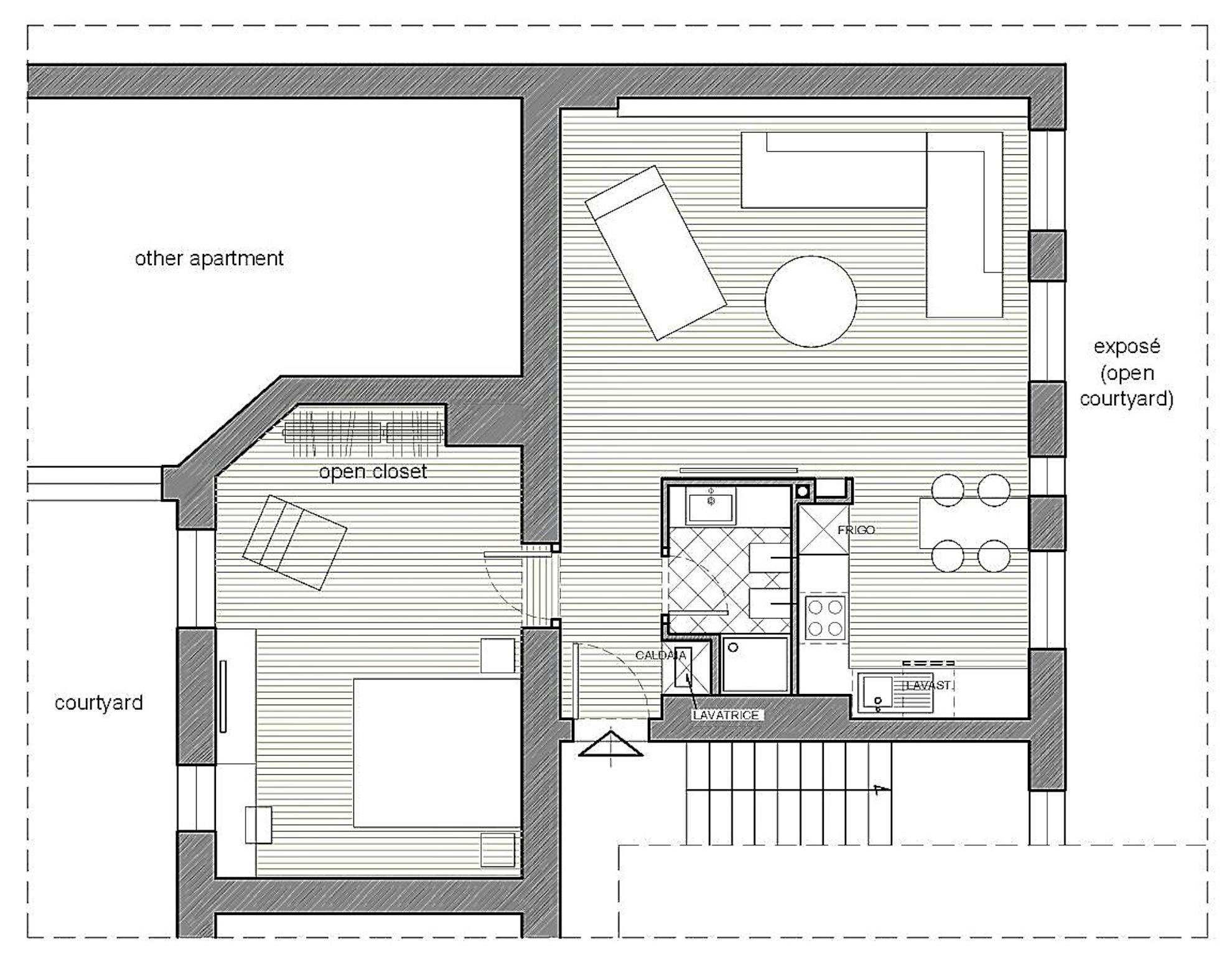 The apartment s located on the 3rd floor and consists of a separate bedroom with large bed and open wardrobe + bathroom with a modern shower and bidet + a huge living room with a renovated kitchen. It still has beautiful vintage wooden floor tiles and is very luminous. Washing machine and other household electric devices are at your disposal, as well as all appliances and a complete furniture. Sheets and towels upon request.
