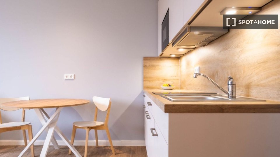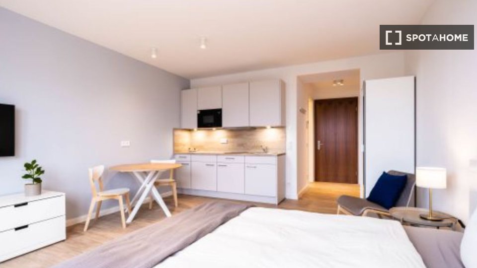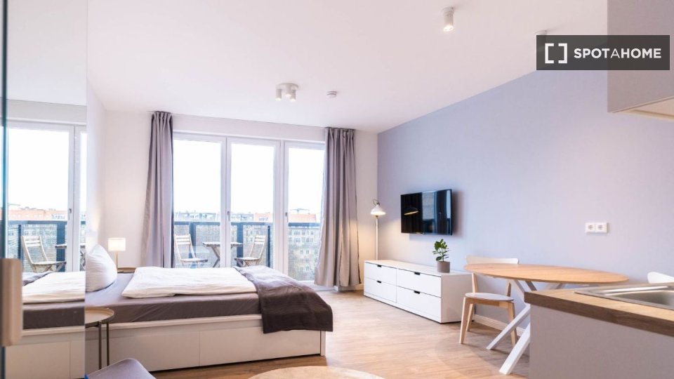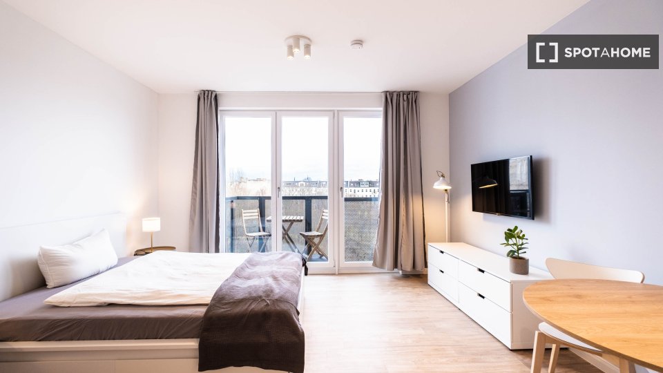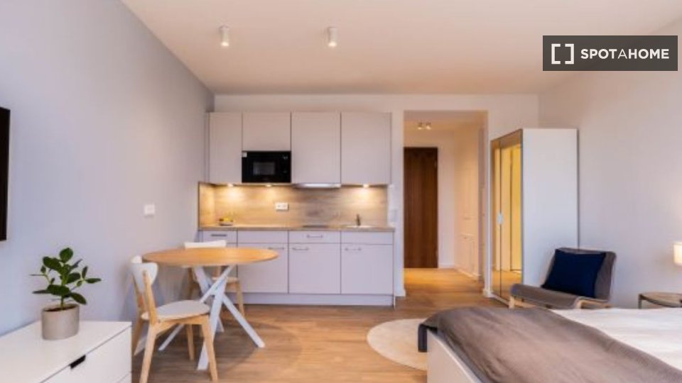 Pets allowedAllowedWelcome to this fully furnished and well-equipped studio located in Berlin. The property includes an equipped kitchen, common washing machine and dryer, and features inclusivity with no tenant restrictions. Couples are welcome, and all utility bills (electricity, gas, water, and wifi) are included, ensuring a convenient stay. This property has undergone comprehensive landlord verification by Spotahome.