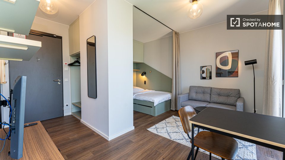 Located in Berlin, the studio is conveniently situated near multiple dining options. Enjoy Italian cuisine at Bring'n Pizza or grab a slice at Pizzeria Mimo. Explore nearby Rixdorfer Schmiede, a notable tourist attraction, or visit Estrel Springbrunnen. The neighborhood offers a vibrant and well-connected atmosphere, perfect for professionals or students seeking convenience and comfort.