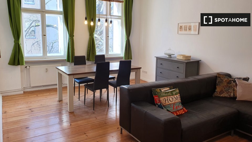 Pets not allowedNot allowedDiscover this delightful 2-bedroom apartment located in Berlin. The property is fully furnished and includes an equipped kitchen with modern appliances such as a dishwasher and an oven. Additional features include a private washing machine and a TV for your convenience. All utility bills, including electricity, water, gas, and internet, are included in the rent.