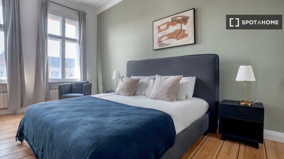 Furnished 2-bedroom apartment for rent in Berlin. The property is on the 4th floor.