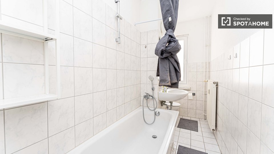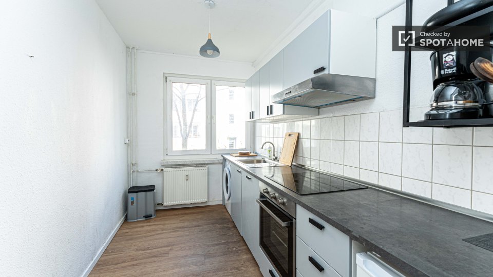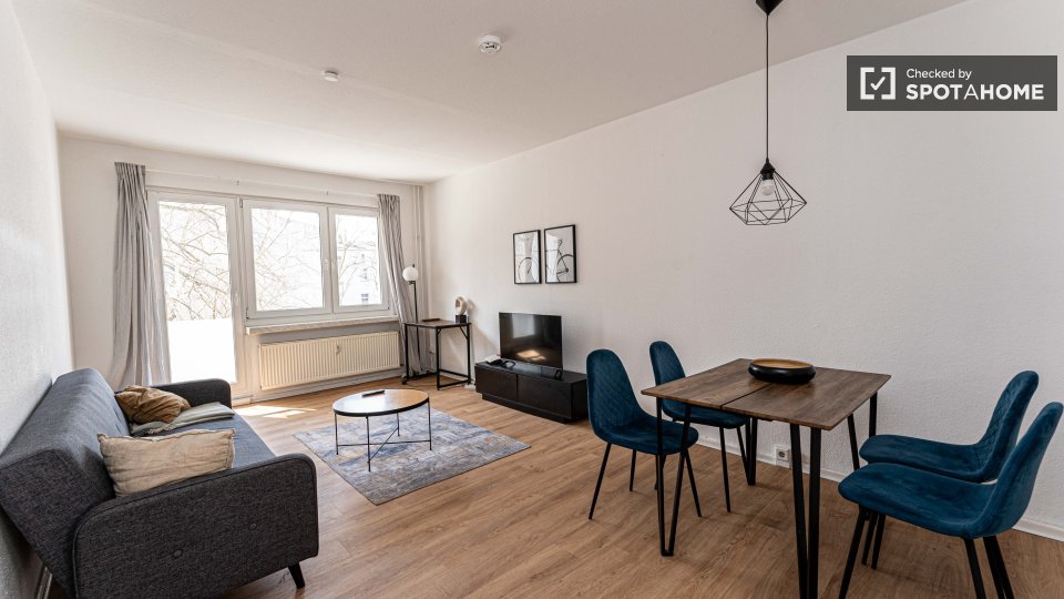 Pets not allowedNot allowedStep into this fully-furnished studio available for rent in Berlin. The apartment offers a well-equipped kitchen featuring a dishwasher and oven, as well as a private washing machine for added convenience. It also features a balcony, central heating, and a TV for your leisure. The property has been thoroughly checked by Spotahome for quality assurance and is suitable for both professionals and students. All bills, including water, electricity, gas, and WiFi, are included in the rental price.