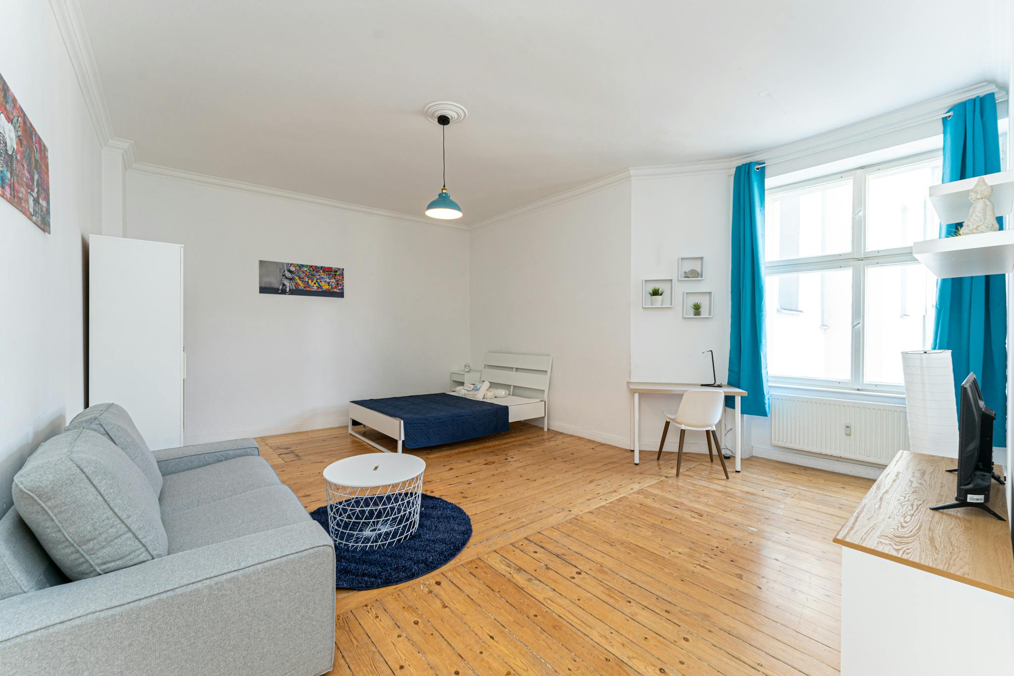 This marvelous 1-room apartment offers a spacious 46 qm with high ceiling as well as wodden flooring. The accommodation is located in the scene district Prenzlauer Berg - more central than this location you cannot find! This enjoyable area offers supermarkets, restaurants and bars in abundance.