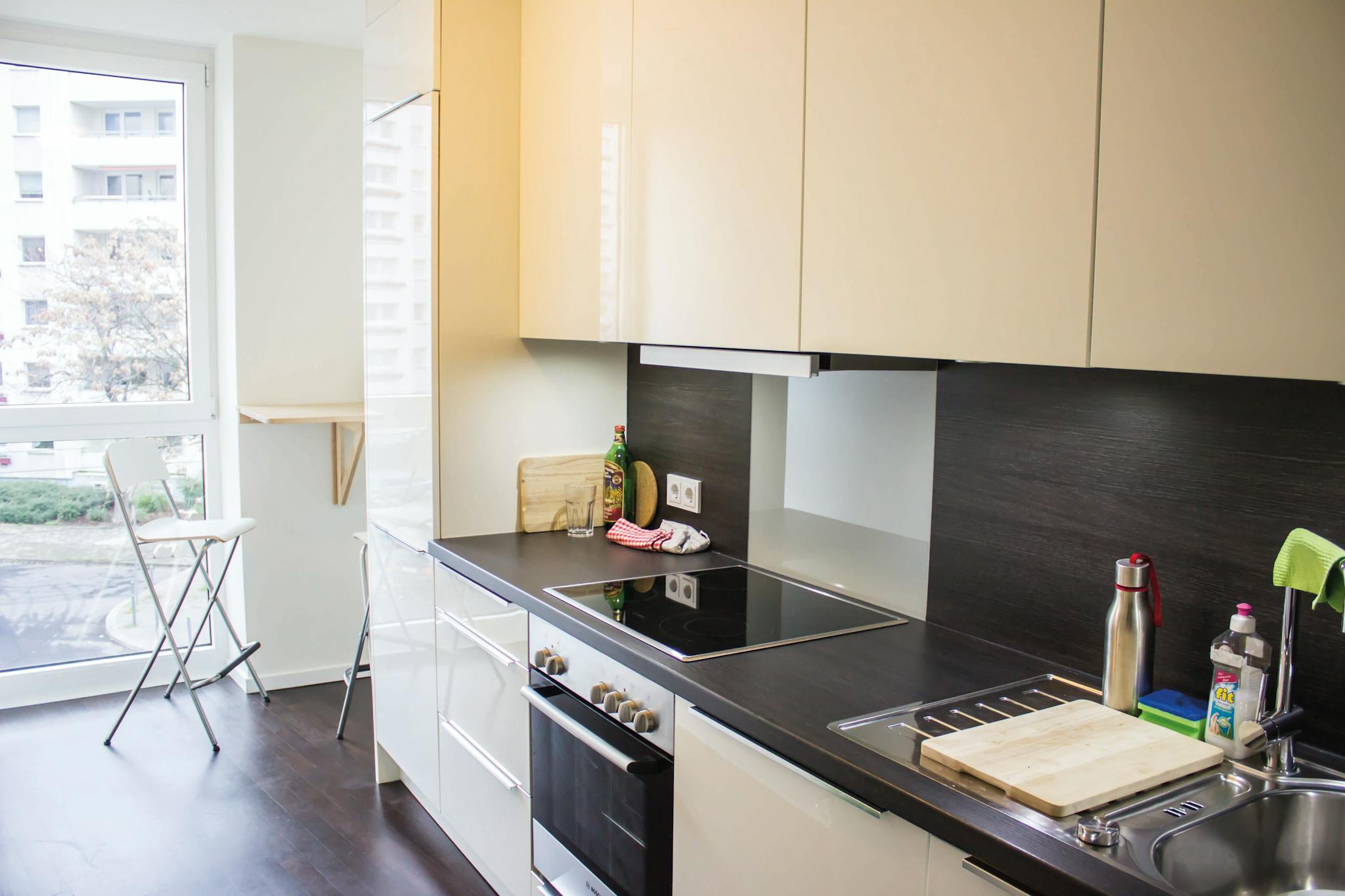Our flats fulfil all your daily living requirements. Every flat comes readily equipped with a kitchen, including refrigerator, cooking equipment and dishes. Flats also include a washing machine and Wi-Fi Internet. Each room is fully furnished and offers a comfortable bed with fresh linen and a workspace. The area provides you with several shopping opportunities and excellent connections to public transport.