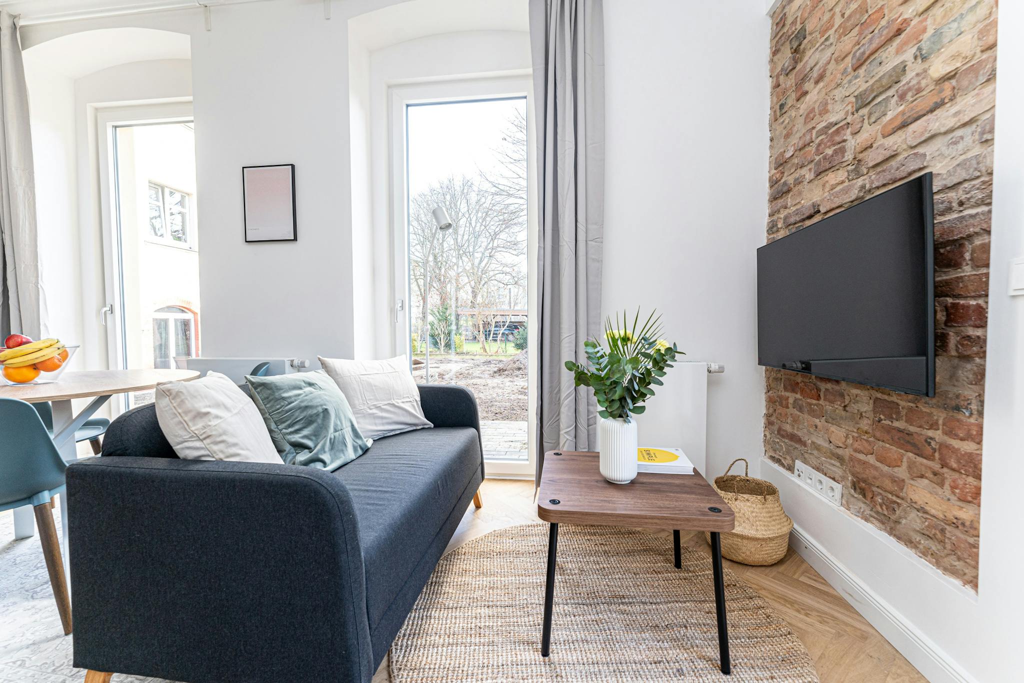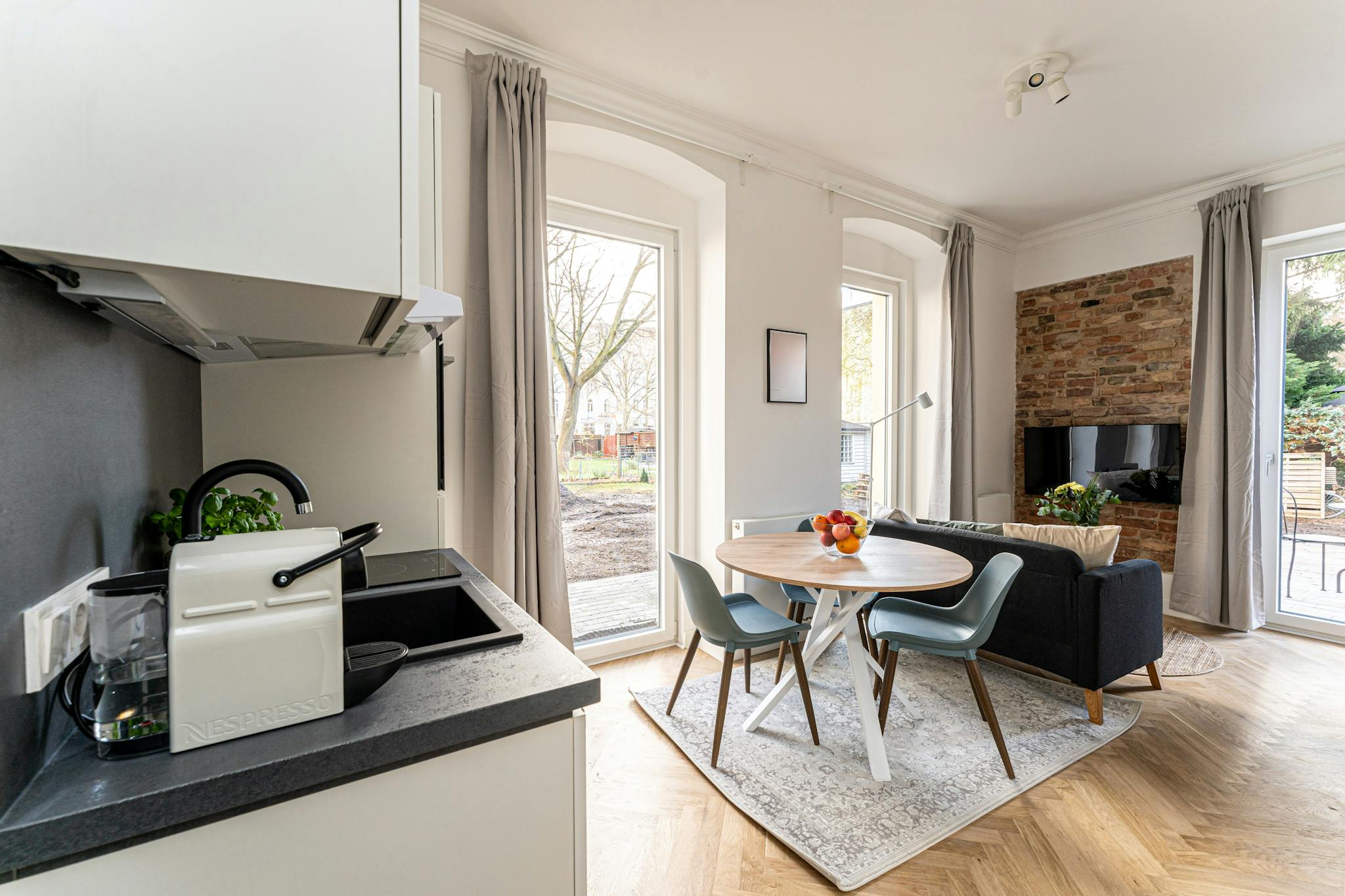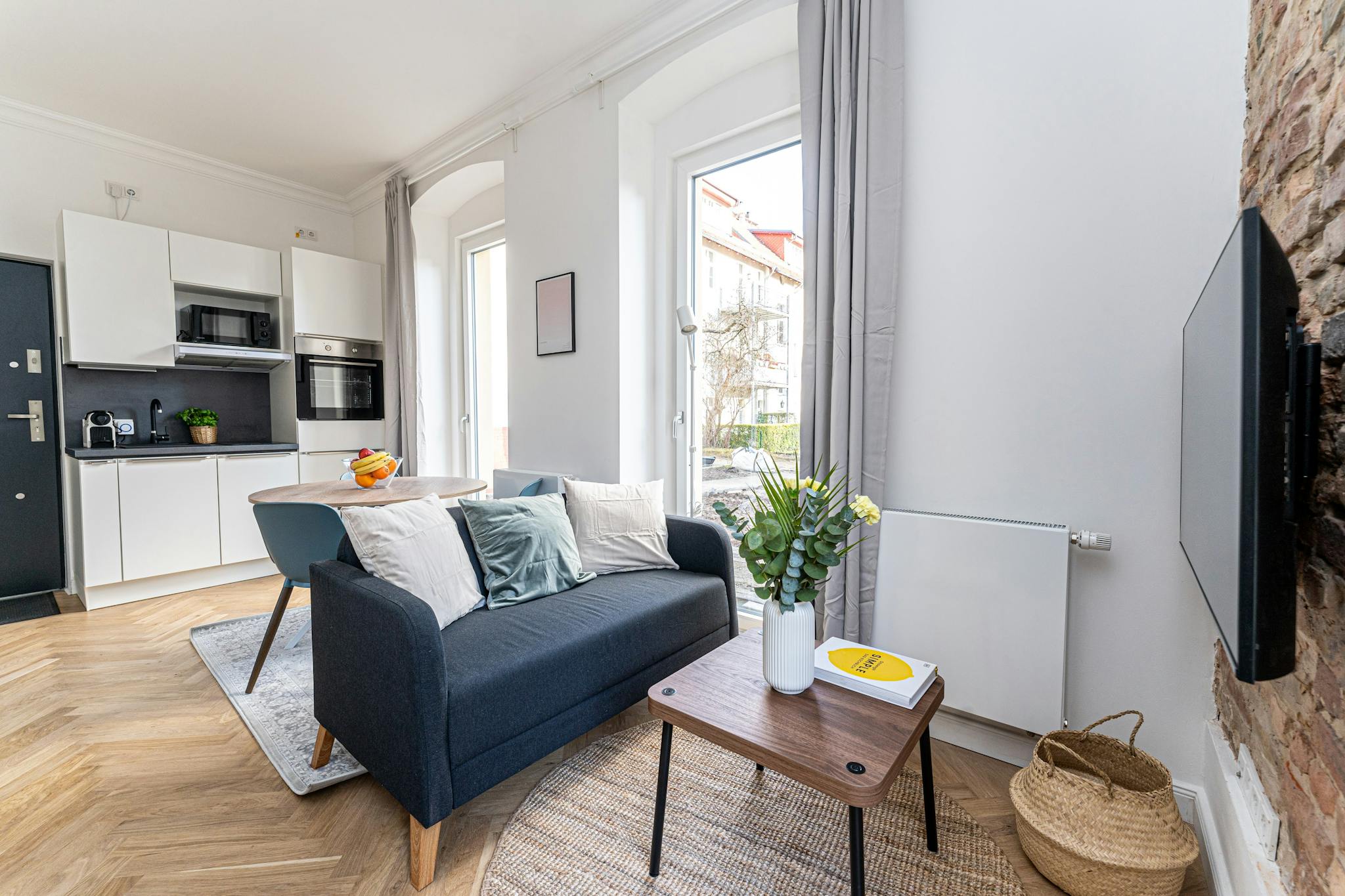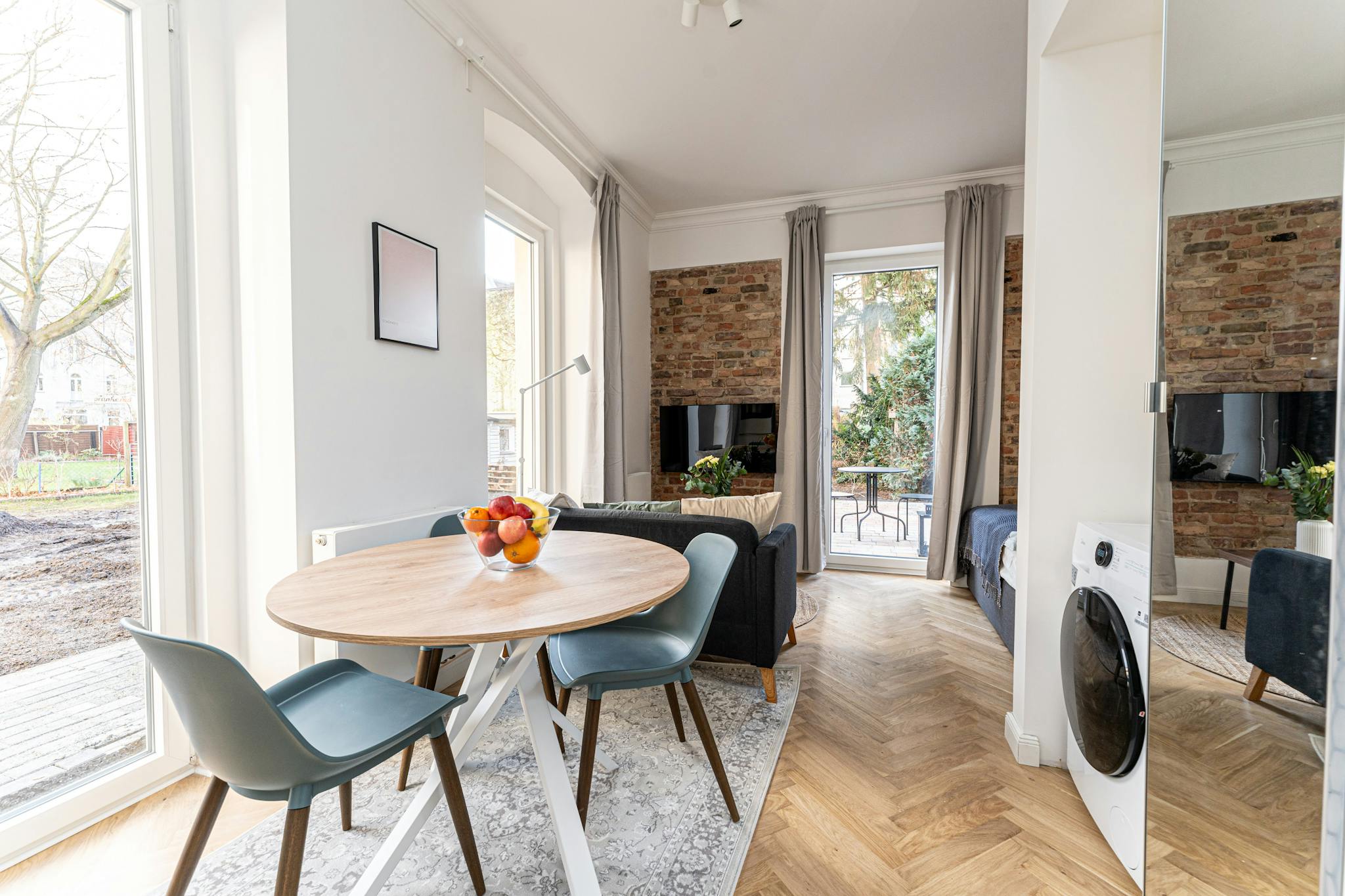 Außerdem stehen Ihnen ein moderner 4K Smart-TV mit Netflix und Amazon Prime (Tarife NICHT inklusive), eine Echo-Dot Soundanlage sowie kostenloses WLAN mit Flatrate zur Verfügung. Eine Waschmaschine mit Trockner rundet das Angebot ab.