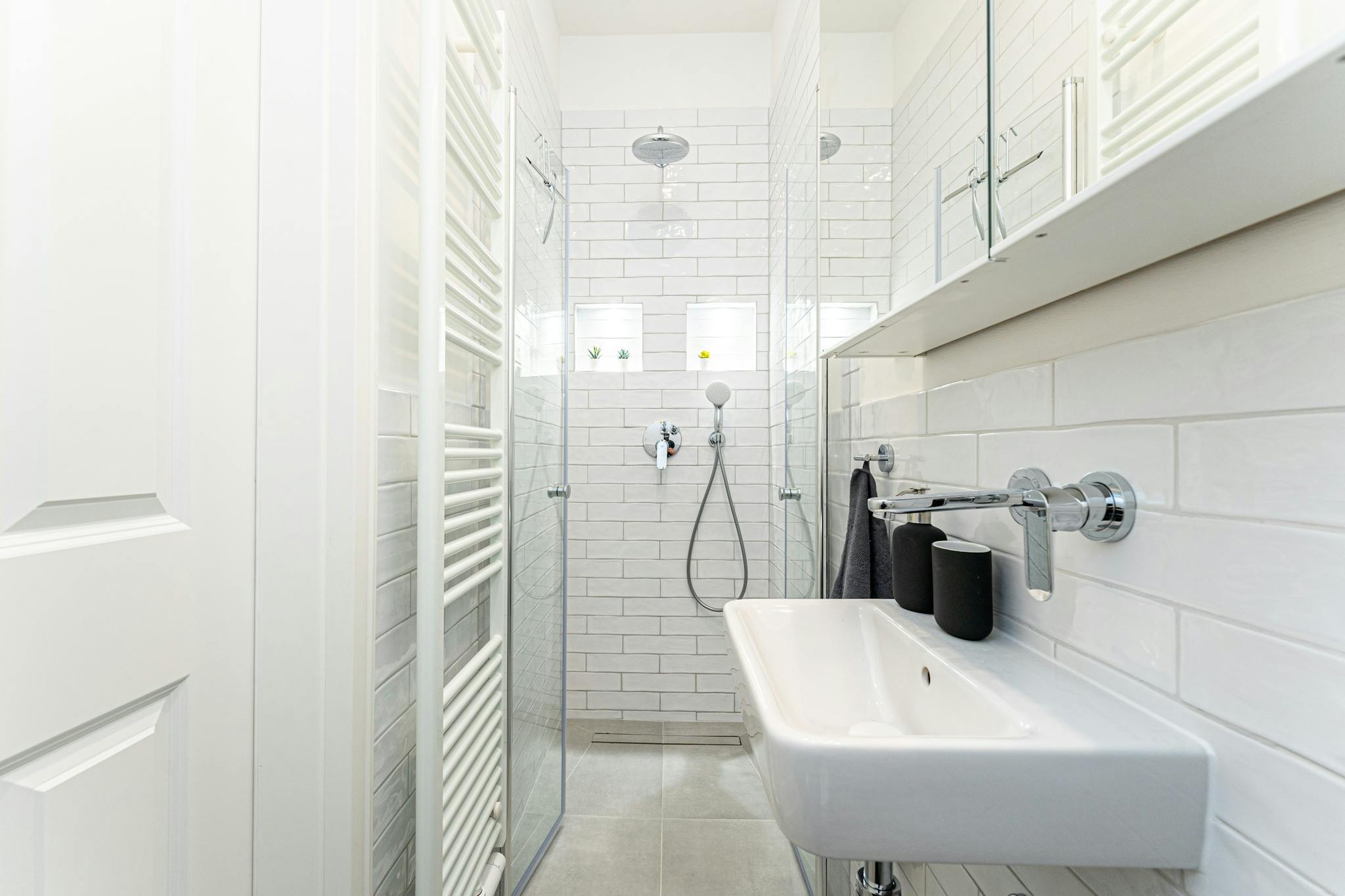 Das Badezimmer ist mit einer bodentiefen Dusche ausgestattet und bietet alle notwendigen Sanitäreinrichtungen. Die neue Küche ist vollständig eingerichtet und lässt keine Wünsche offen.