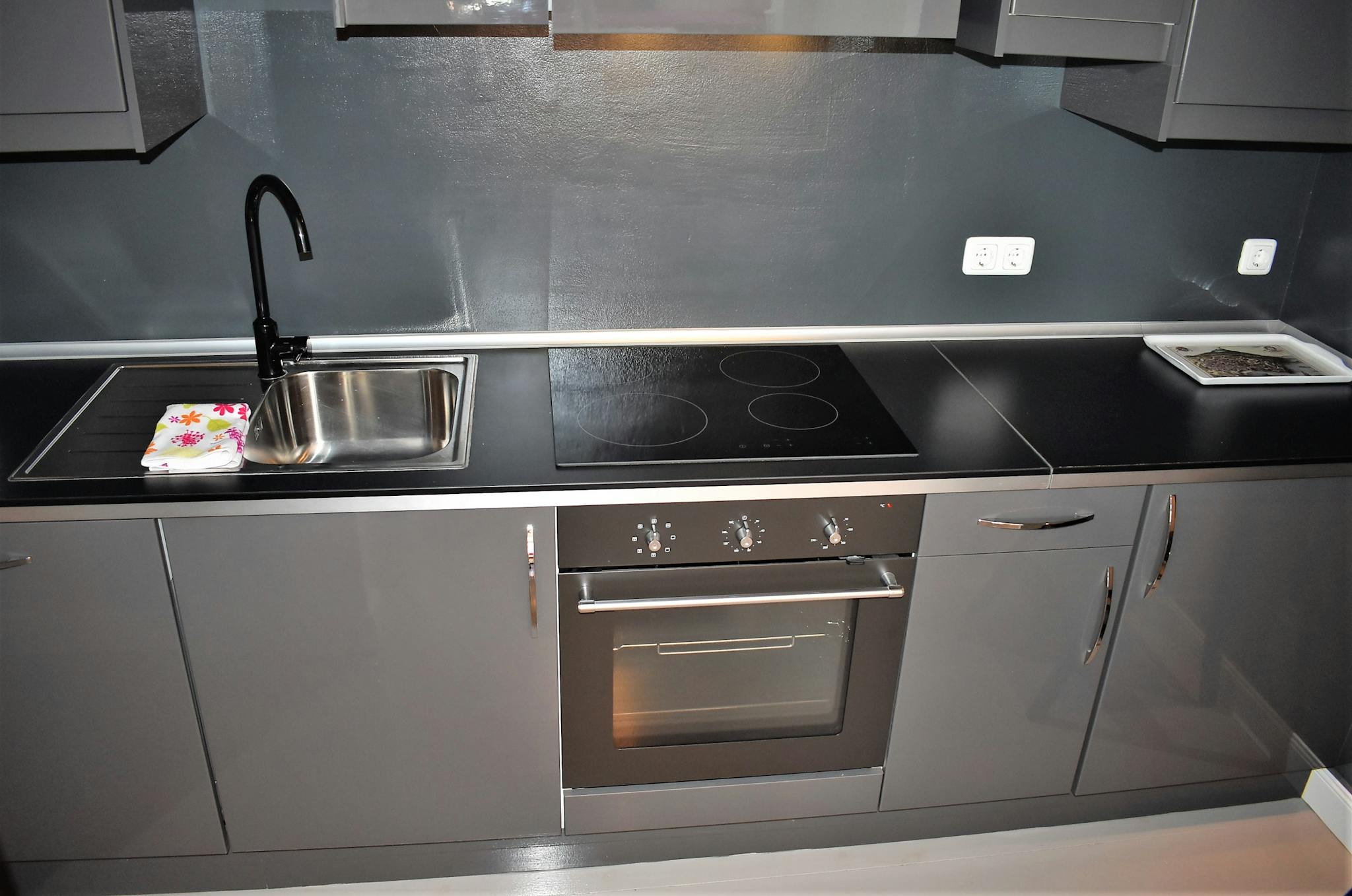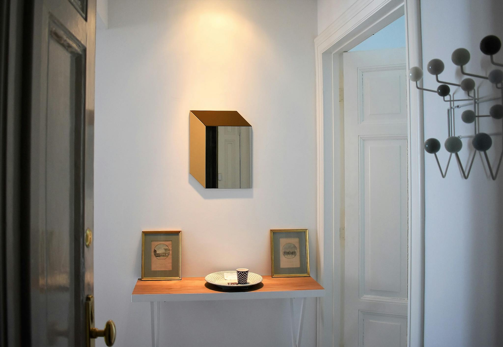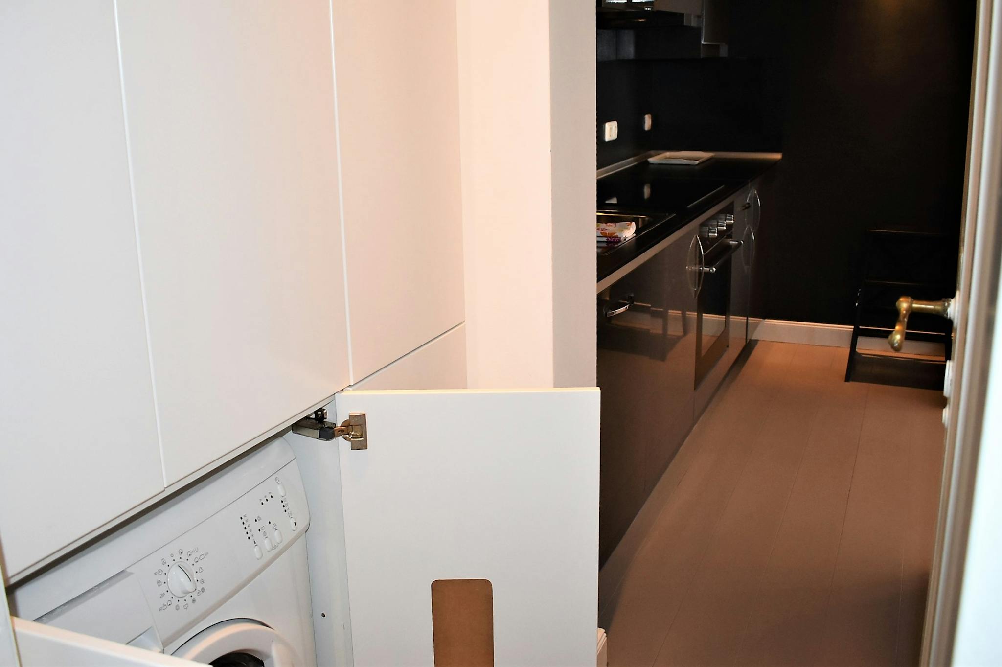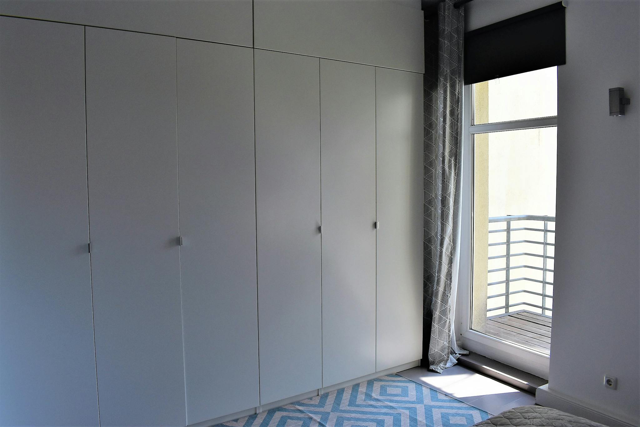 The modern kitchen is entirely black and fully equipped, including all cooking and eating utensils + washing machine, dishwasher, oven, microwave, toaster, kettle, coffee machine and a few other useful appliances. Next to it a beautiful unique room, which can be used to work, to relax or to host up to 8 dining companions in a slightly-oversized wooden table. The large bedroom is cosy and displays: comfortable double bed, bed tables, cupboard, desk with chair, spacey wardrobe, blinding curtains, private bathroom with bidet, balcony.