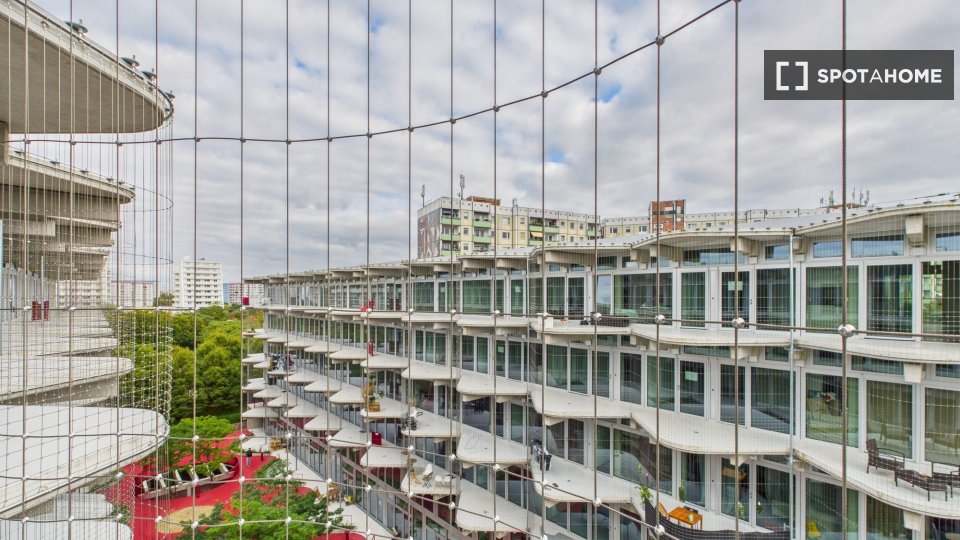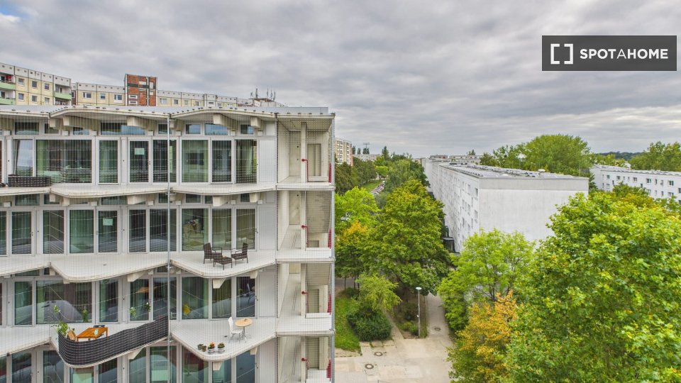 Daily needs are close at hand — Spree Center (shopping, dining, and services), supermarkets (EDEKA & PENNY within 5 minutes’ walk), cafés, gyms, and a swimming pool. Families will appreciate nearby schools and kindergartens, while professionals enjoy fast links to the city center, airport, and even the Tesla Gigafactory. For leisure, explore Stadion Wuhletal (soccer and sports club) or unwind in the famous Gardens of the World just around the corner. Hosting friends or family? A private apartment option is available for nightly bookings.