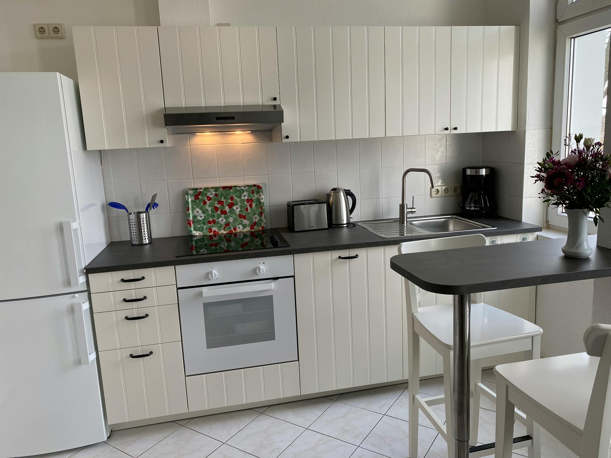 Non-SmokingNot allowedYour new home in Berlin/Pankow - freshly modernised: 1 bedroom, big living room, light laminate flooring, brand new kitchen, bright white walls/lacquered doors. Cosy and modern furnished. The open kitchen is equipped with everything a cook's heart desires - the integrated bar table invites you to have your morning coffee. Fast W-Lan and a large flat screen monitor provide entertainment. The bedroom offers a 180 x 200 m bed facing the rising sun. The balcony overlooks the carp ponds. The living room is equipped with a sofa bed in case you have guests coming over. Pankow is close to the city center east, Alexanderplatz, the flat is near a S-Bahn, bus and Tram to get around Berlin as quick as possible. Several grocery stores are in convenient walking distance