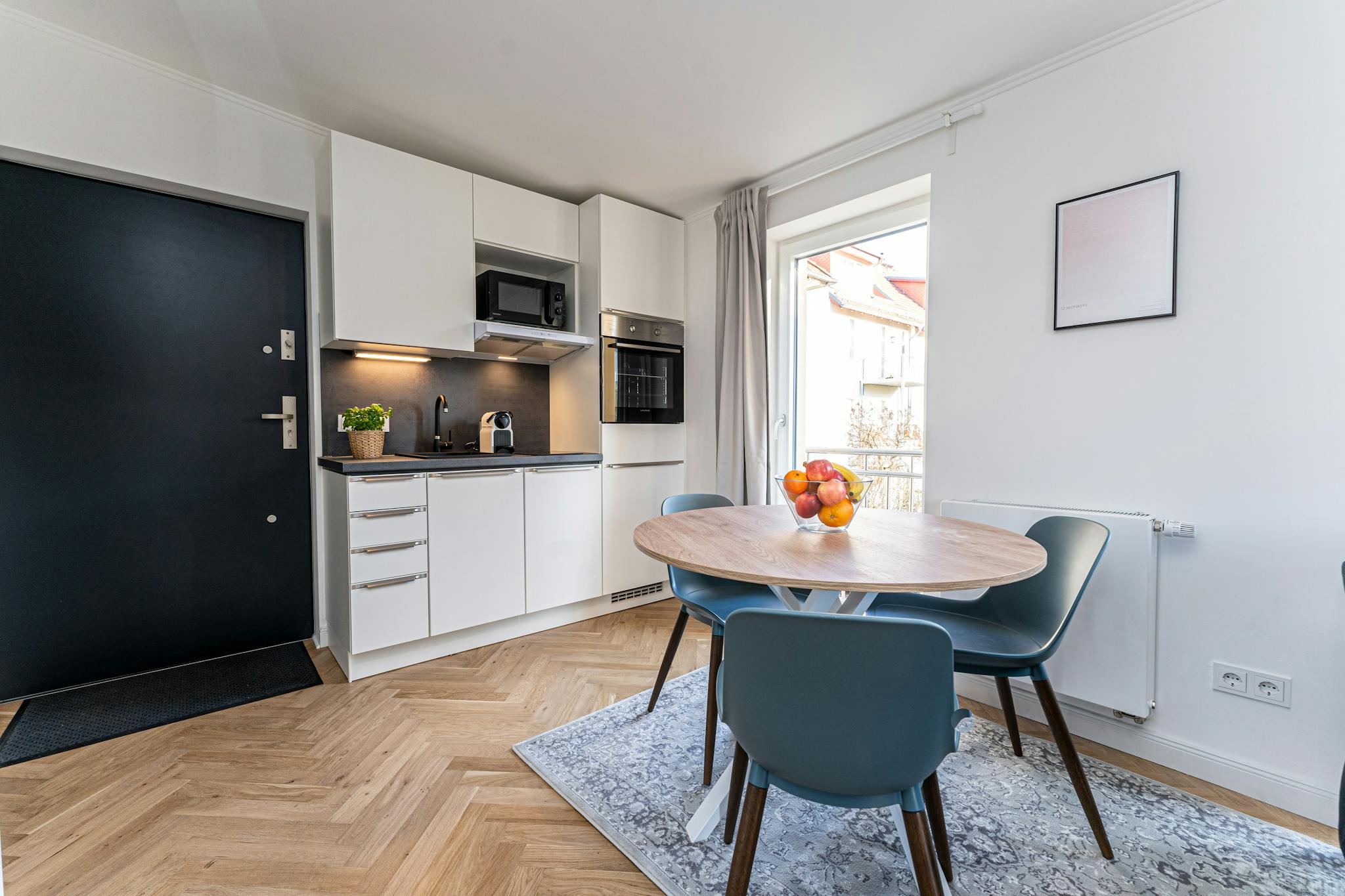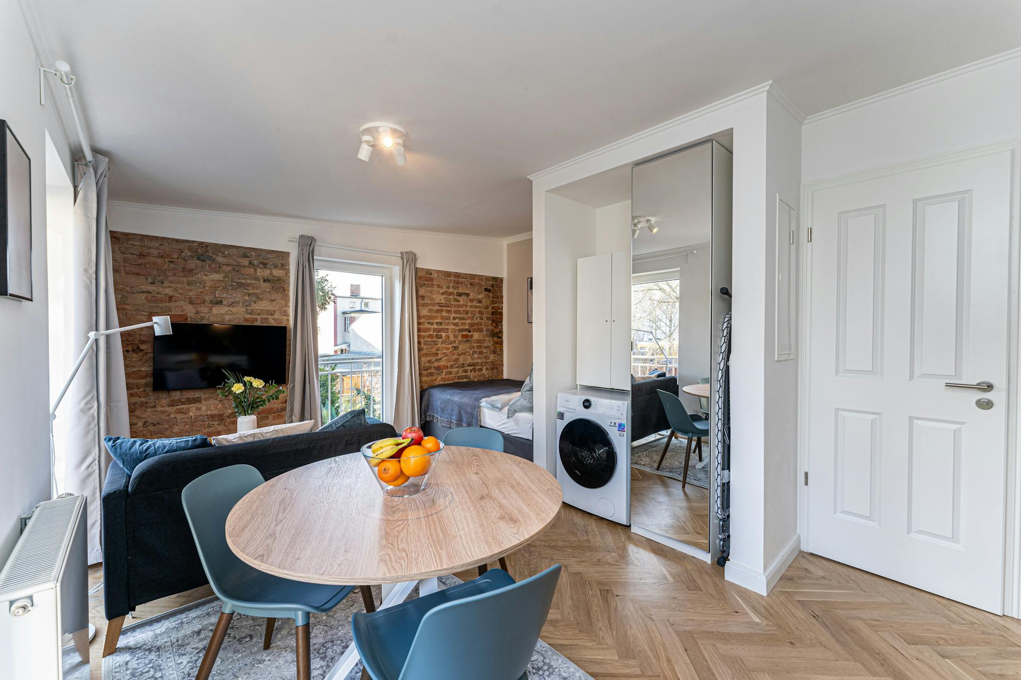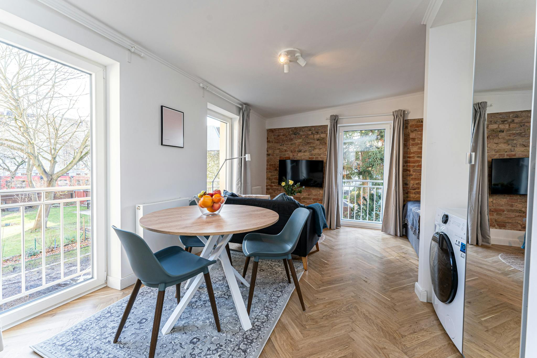 Außerdem stehen Ihnen ein moderner 4K Smart-TV mit Netflix und Amazon Prime (Tarife NICHT inklusive), eine Echo-Dot Soundanlage sowie kostenloses WLAN mit Flatrate zur Verfügung. Eine Waschmaschine mit Trockner rundet das Angebot ab.