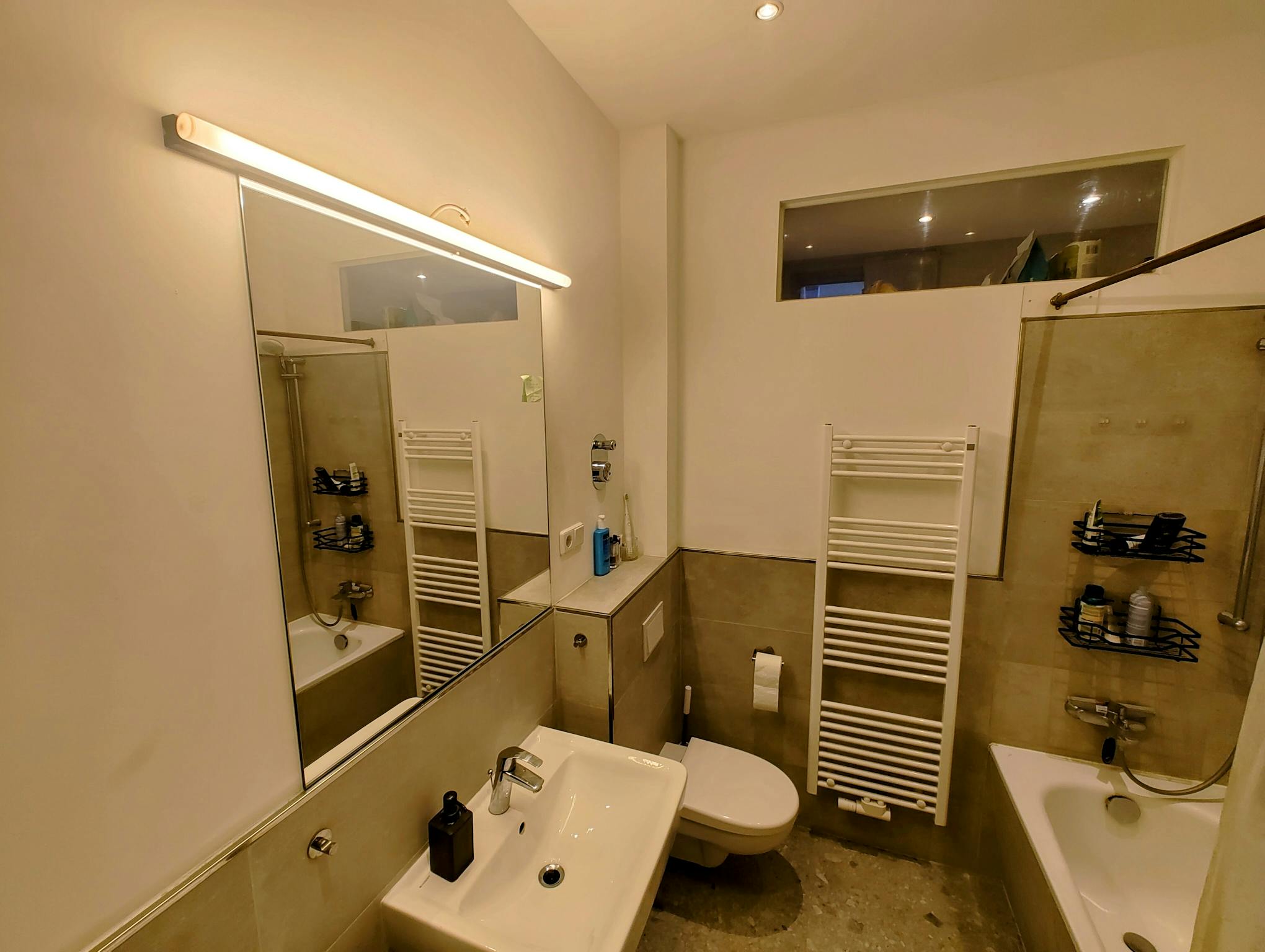 The flat includes modern furniture, high speed internet, (I regularly test the speed and it's around 270 Mbits down and 46 Mbits up with 12ms ping) a ultra short throw project connect to hifi setup and apple TV.