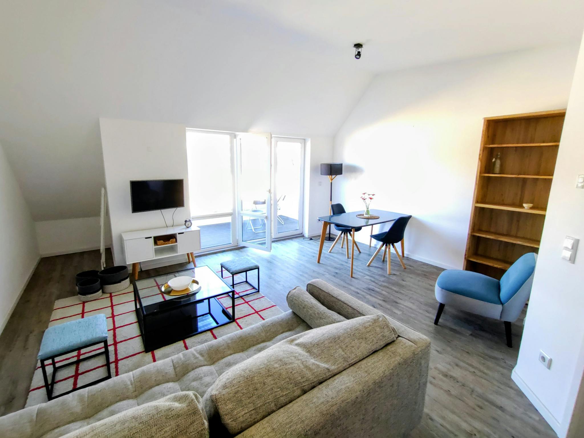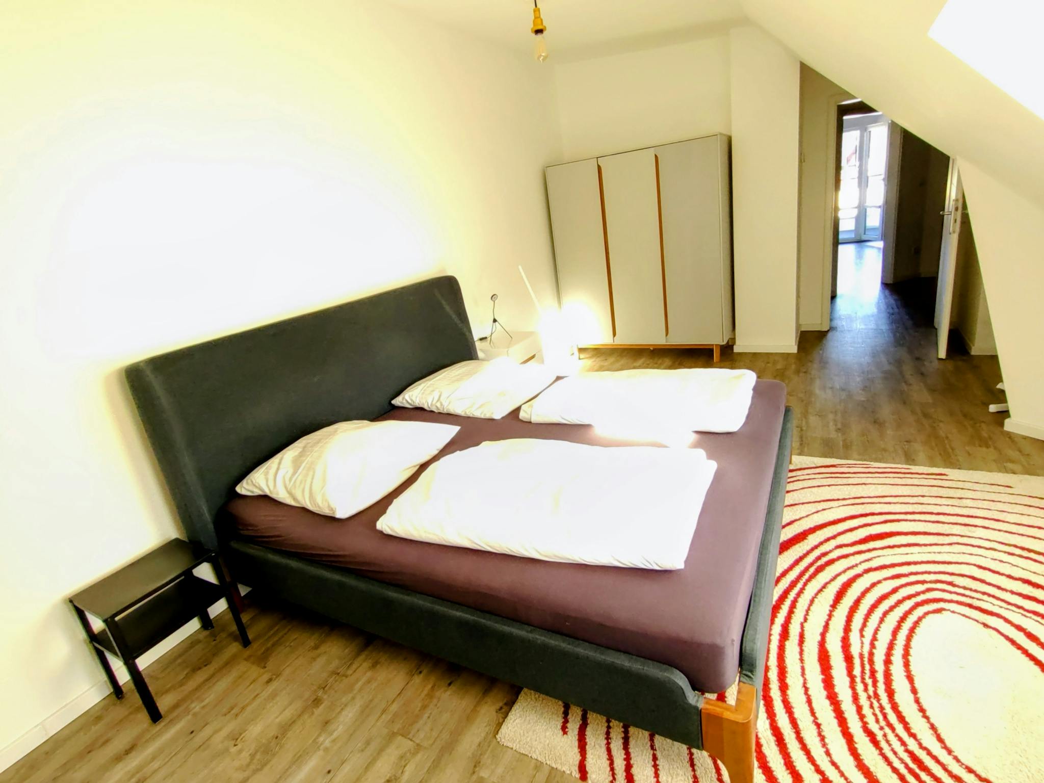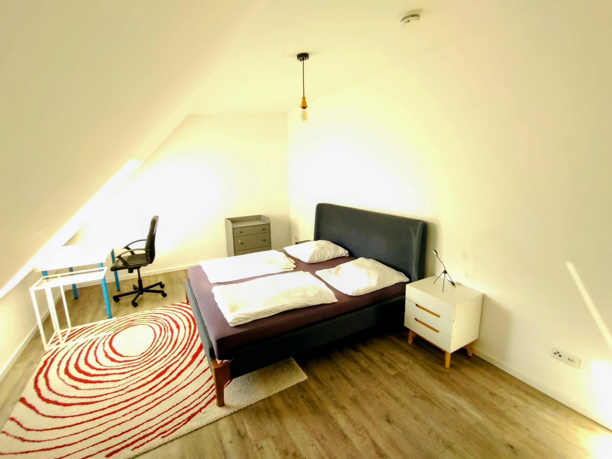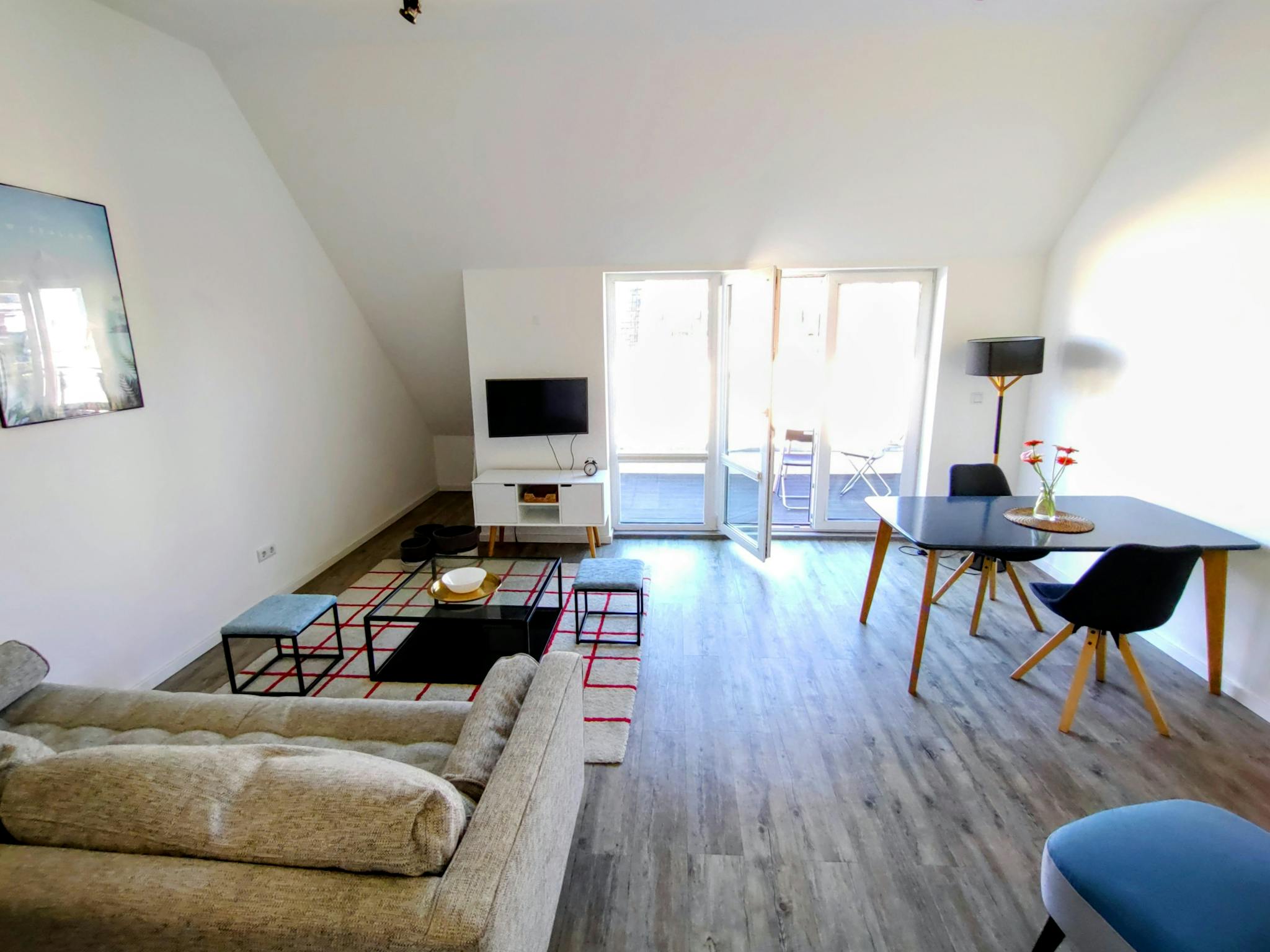 Non-SmokingNot allowedThe 2-room apartment on offer is an attic apartment in Friedrichshain that has been expanded and fully equipped this year. The living room area has a terrace access with east orientation. Its attached kitchen is fully equipped.The bedroom has also a desk for studies / work.