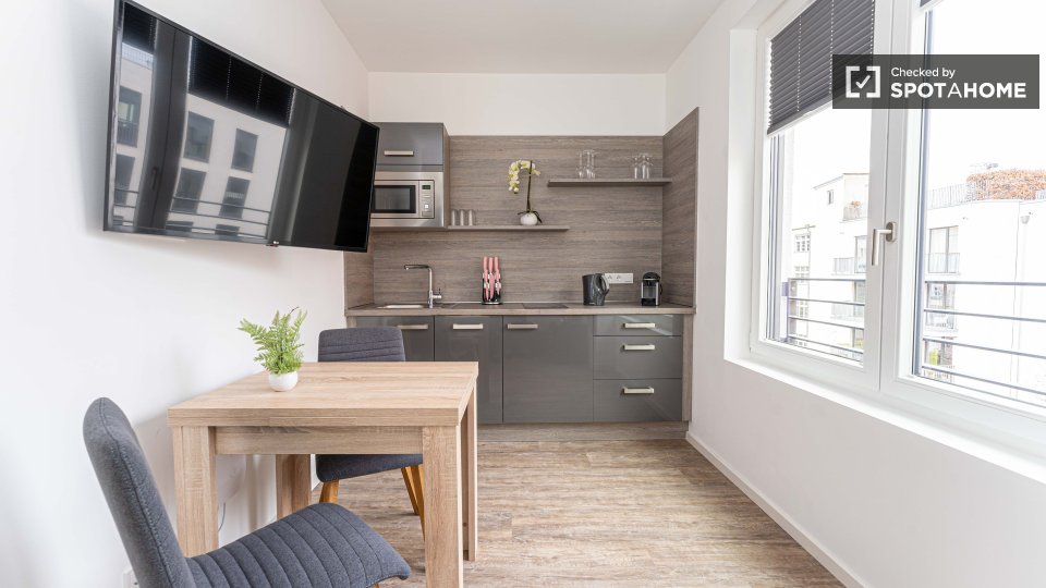 Pets not allowedNot allowedA terrific studio with a backyard patio in the middle of the city and six minutes by U-Bahn from Alexanderplatz. You'll find it near The Volkspark am Weinberg, a park popular with locals. It has a lake and a Swiss restaurant if you get hungry while strolling the paths.