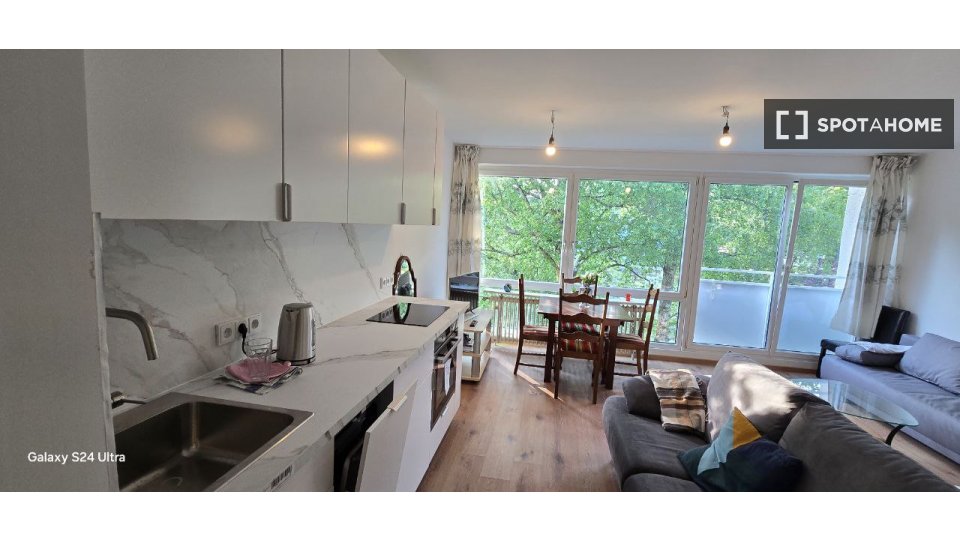 Located in Berlin's district of Bezirk Steglitz-Zehlendorf, this studio is near multiple dining options such as Preussen Casino, Restaurant Rhodos, and Restaurant Schlosspark-Grill. The Institut für Hygiene is within a convenient distance, making this property especially suitable for students or professionals in the area.