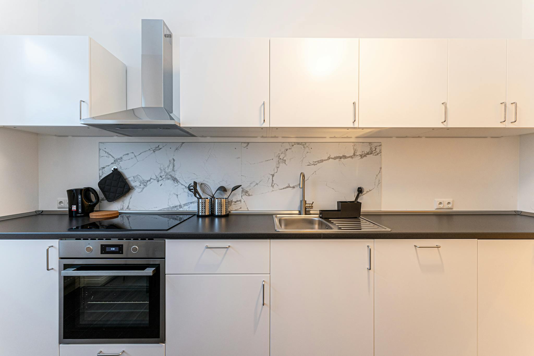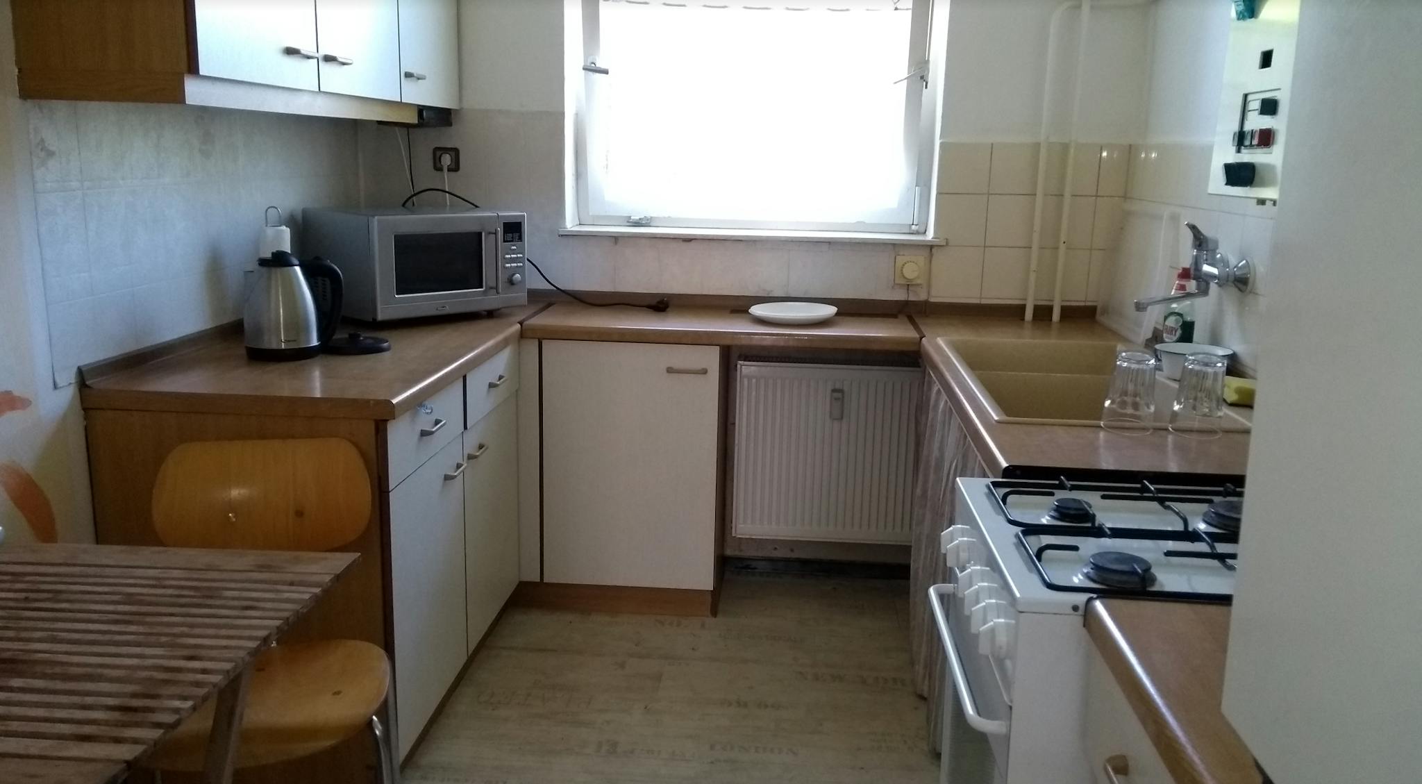 Einbauküche, sichere Umgebung, Bad mit Dusche, möbliertes Zimmer.