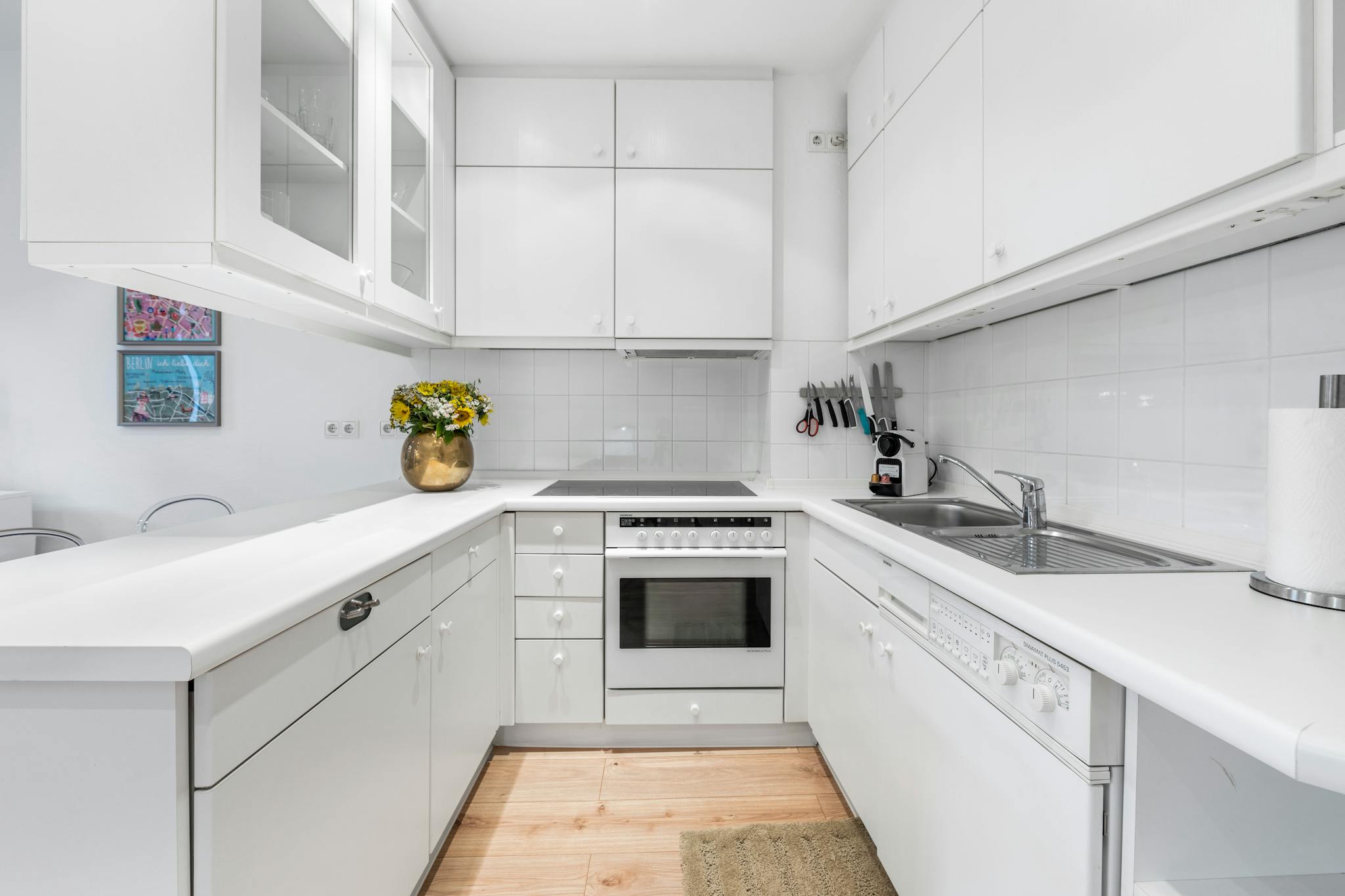 Non-SmokingNot allowedDie Wohnung befindet sich in einem typischen Berliner Altbau im beliebten Szene-Bezirk Prenzlauer Berg. Die Wohnung liegt im 2. Stock des Vorderhauses. Das lichtdurchflutete Wohnzimmer ist mit einer bequemen Couch und einem Lounge-Sessel, einem Schreibtisch/Arbeitsplatz, einen Sideboard und einem Smart-TV ausgestattet. An den Wohnbereich grenzt die offene Küche mit Essthresen sowie Herd/Backofen, Kühl/Gefrierschrank, Waschmaschine mit Trockner, Nespresso Maschine und alle Kochutensilien. Staubsauger, Bügeleisen, Putzgeräte, alles da. Das Schlafzimmer ist mit einem 160 x 200 cm Bett möbliert, es gibt genügend Kleider-Schränke und eine Kommode für Kleidung, der Blick geht in den begrünten ruhigen Innenhof. Im Bad finden Sie ein großes Waschbecken mit breiten Spiegel und eine Badewanne mit Glasduschwand zum Duschen. Handtücher und Bettwäsche sind vorhanden. Im Preis sind außerdem WLAN, GEZ und eine Reinigung ein Mal im Monat, Hausmeister-Service und unsere persönliche Betreuung enthalten.