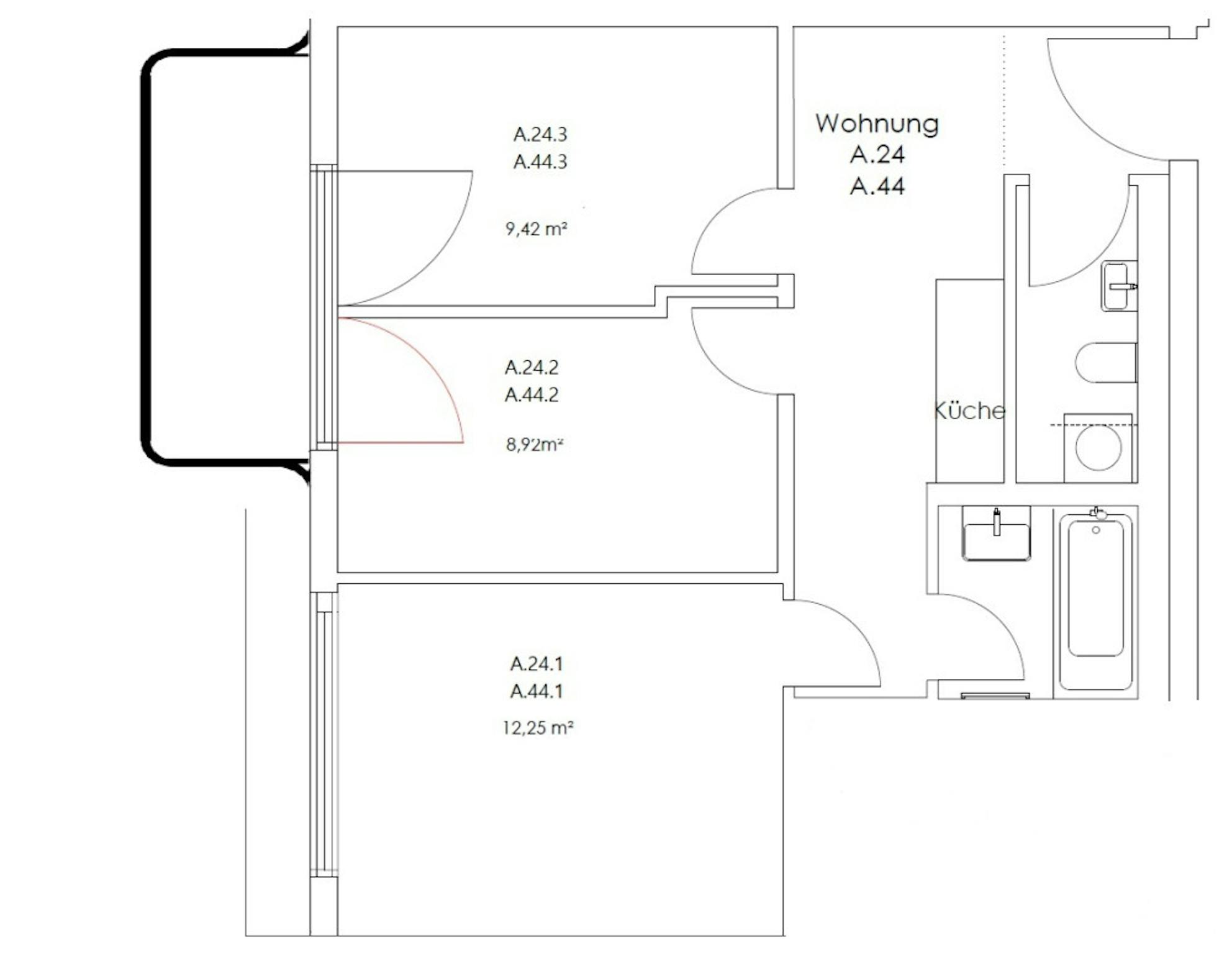 • shared balcony / terrace (access from A.44.2 & A.44.3)