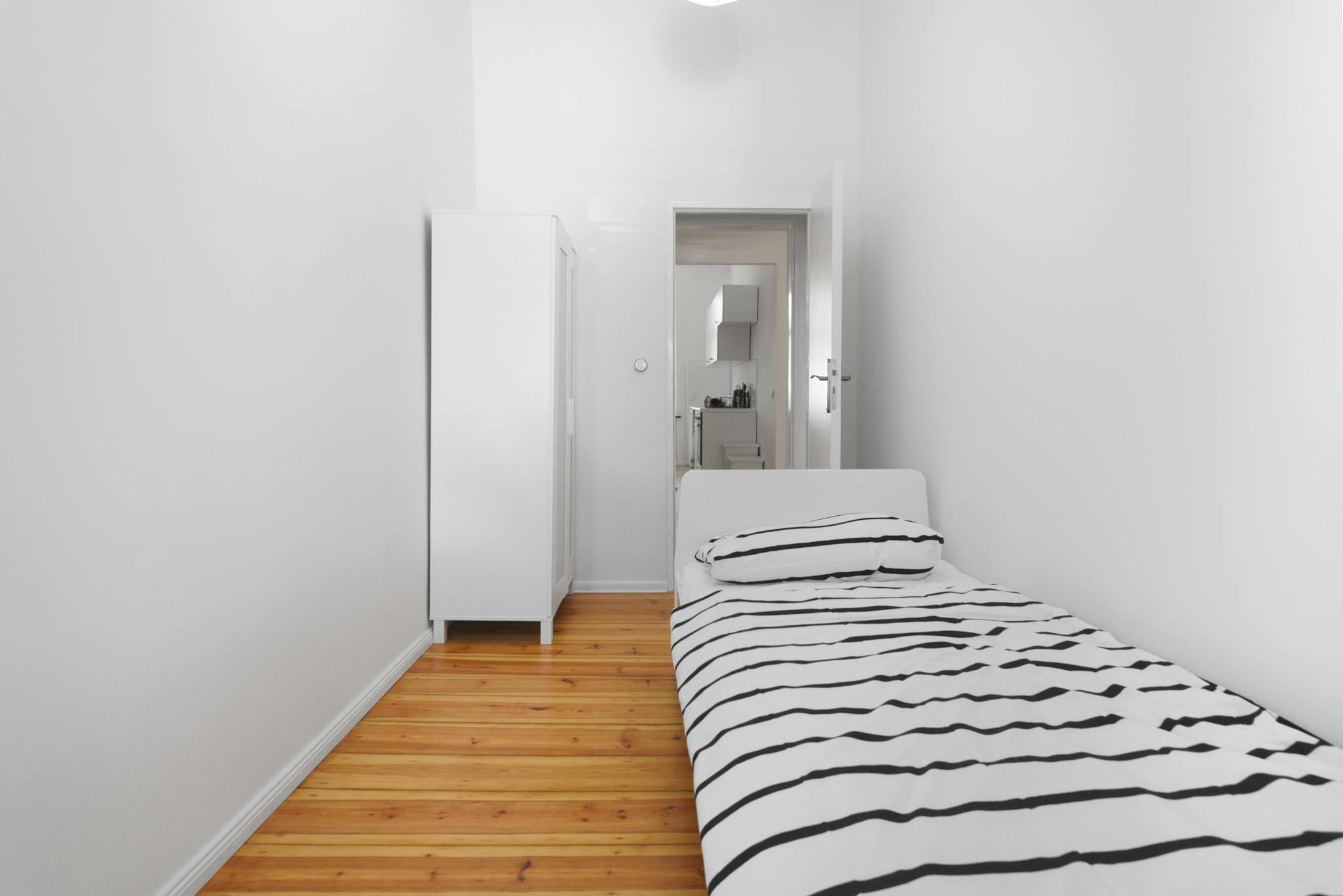 this is a fully furnished room in a shared flat. The room has a comfortable bed, a desk with chair and a wardrobe for your clothes. Also the common areas are fully equipped with washing machine, cooking equipment and all you need for your daily living.