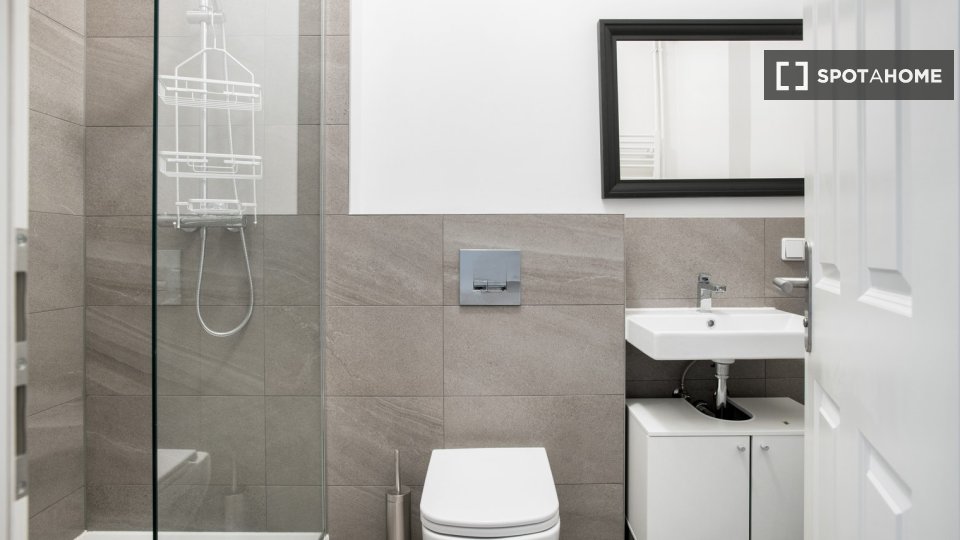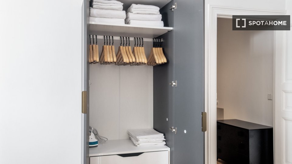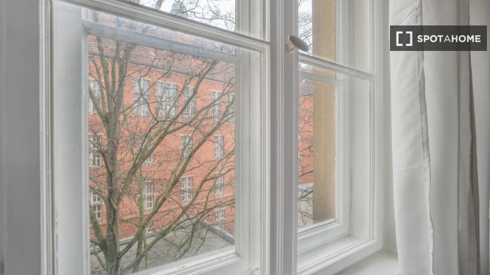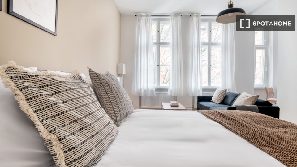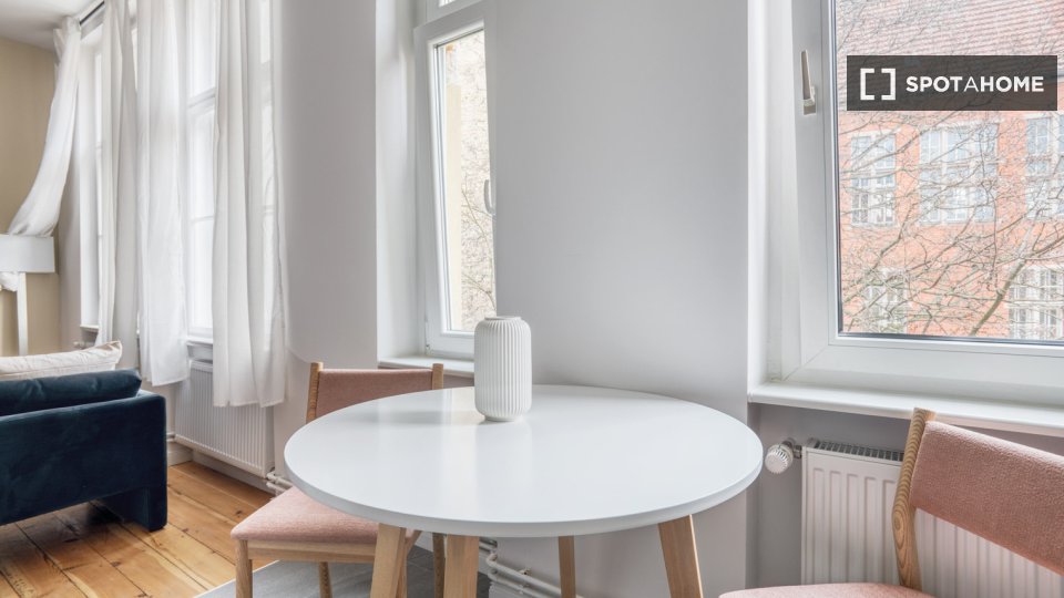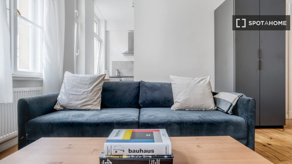 Furnished studio apartment for rent on Boxhagener Str. The property is on the 3rd floor.