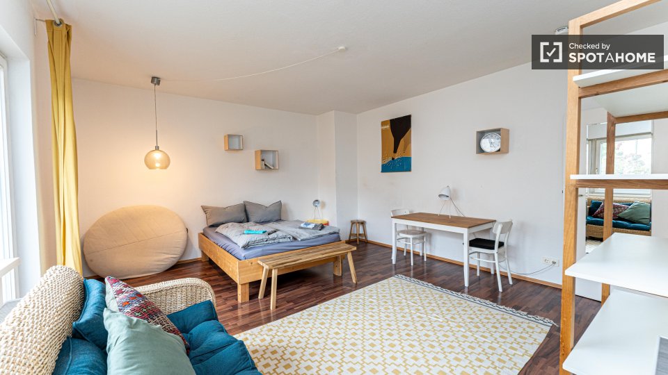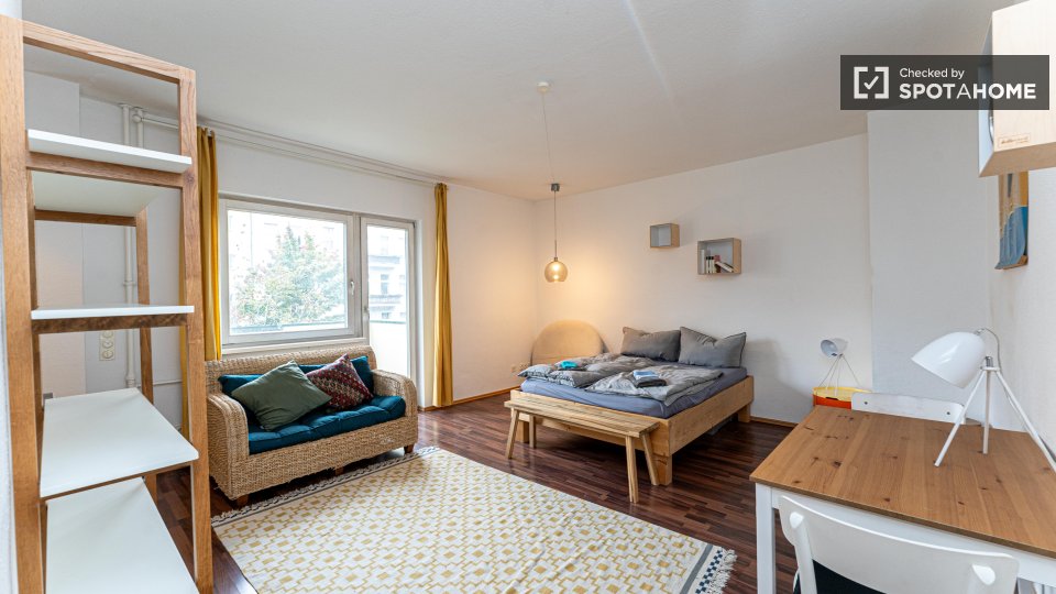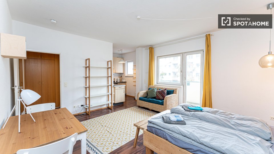Pets not allowedNot allowedWelcome to this beautiful studio apartment available for rent in Berlin. Fully furnished and equipped for your convenience, this property features a modern equipped kitchen, a comfortable balcony, private washing machine, and a dishwasher to make your stay comfortable. The apartment benefits from central heating and all bills including electricity, water, gas, WiFi, and heating are covered. Spotahome has personally checked this property ensuring it meets quality standards.
