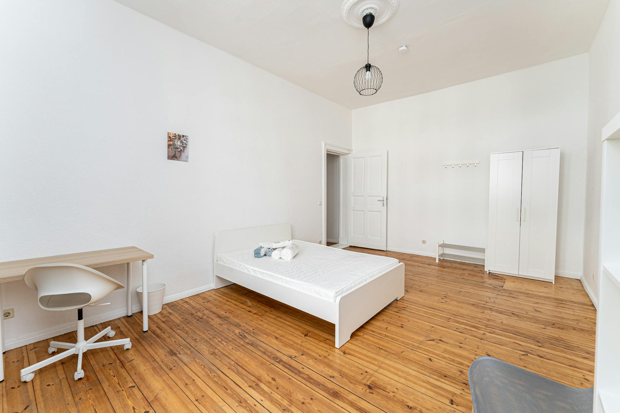 • A brand-new duvet, pillow, mattress protector, bed linen, and a towel