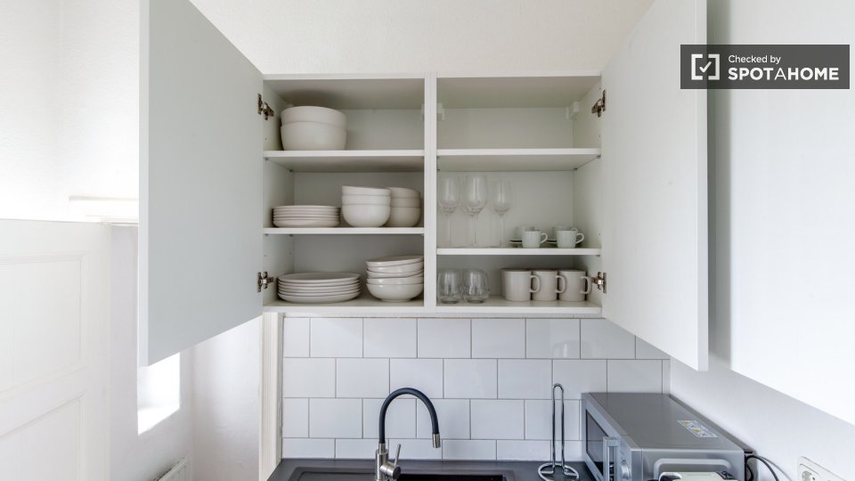 Pets allowedAllowedFurnished apartment with 1 bedroom for rent on Boxhagener Str.. The property is on the 4th floor of a building with an elevator. The property includes equipped kitchen, washing machine, dishwasher, and dryer.